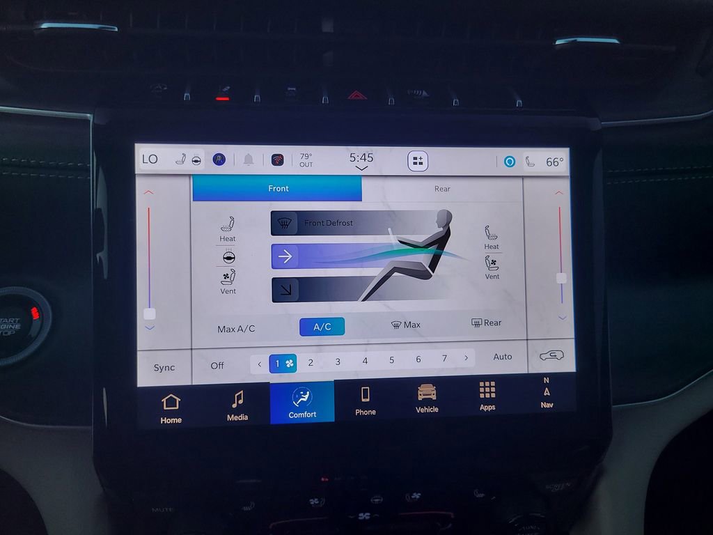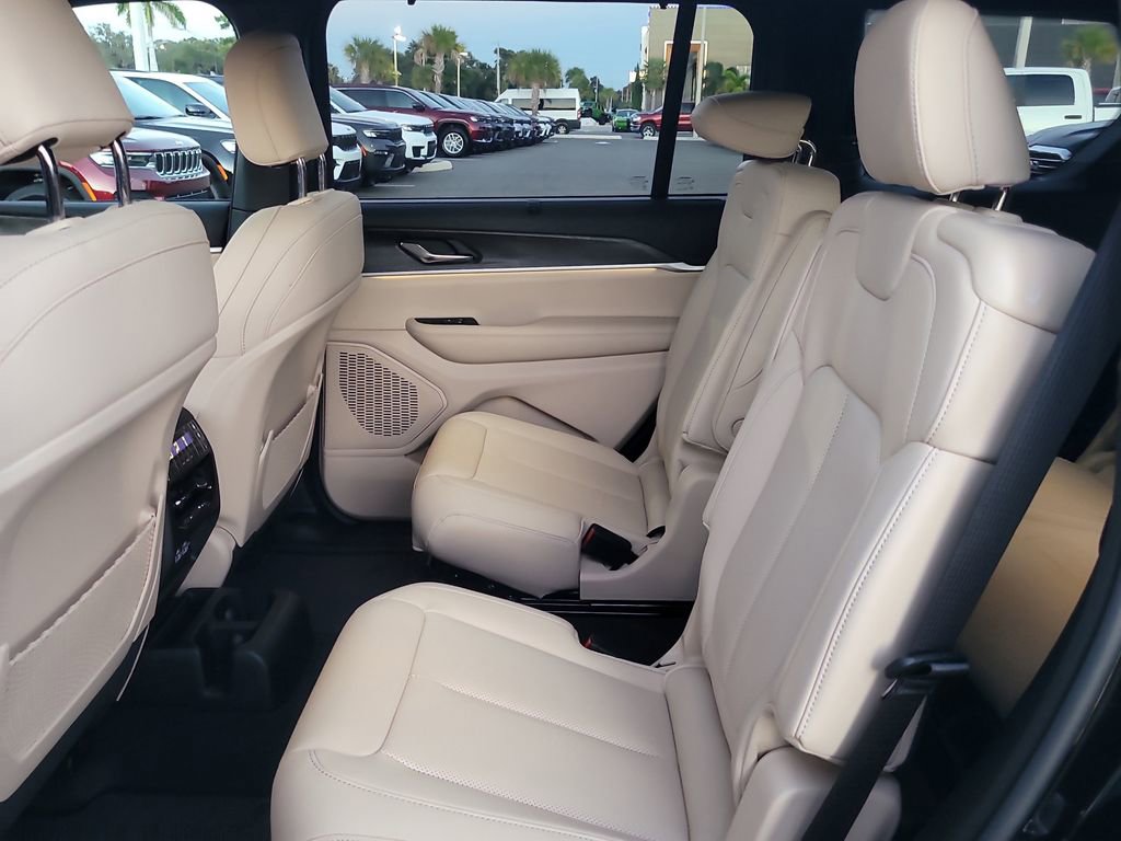 Luxury Tech Group II (2nd Row Manual Window Shades, Auto-Dimming Exterior Driver Mirror, Capri Leatherette w/Axis II Seats, Integrated Off-Road Camera, Intersection Collision Assist System, Memory Steering Column, ParkSense Front/Rear Park Assist w/Stop, Passive Entry - Front/Rear Doors, Liftgate, Power Tilt/Telescope Steering Column, Rain Sensitive Windshield Wipers, Rear Back Up Camera Washer, Rearview Autodim Digital Display Mirror, Surround View Camera System, Ventilated Front Seats, and Wireless Charging Pad), Quick Order Package 22E, 3.45 Rear Axle Ratio, 3rd row seats: split-bench, 4-Wheel Disc Brakes, 6 Speakers, ABS brakes, Active Noise Control System, Air Conditioning, Alloy wheels, AM/FM radio: SiriusXM with 360L, Anti-whiplash front head restraints, Audio memory, Auto High-beam Headlights, Automatic temperature control, Brake assist, Bumpers: body-color, Capri Leatherette Seats, Compass, Delay-off headlights, Driver door bin, Driver vanity mirror, Dual front impact airbags, Dual front side impact airbags, Dual-Pane Panoramic Sunroof, Electronic Stability Control, Emergency communication system, Four wheel independent suspension, Front anti-roll bar, Front Bucket Seats, Front Center Armrest w/Storage, Front dual zone A/C, Front fog lights, Front License Plate Bracket, Front reading lights, Fully automatic headlights, Garage door transmitter, Heated door mirrors, Heated front seats, Heated rear seats, Heated steering wheel, Illuminated entry, Interior Rear Facing Camera, Knee airbag, Low tire pressure warning, Manual Fold Seatbacks, Memory seat, Model Year Tracking, Navigation System, Normal Duty Suspension, Occupant sensing airbag, Outside temperature display, Overhead airbag, Overhead console, Panic alarm, ParkView Rear Back-Up Camera, Passenger door bin, Passenger vanity mirror, Power door mirrors, Power driver seat, Power Liftgate, Power passenger seat, Power steering, Power windows, Radio data system, Radio: Uconnect 5 Nav w/10.1" Display, Rear air conditioning, Rear anti-roll bar, Rear reading lights, Rear window defroster, Rear window wiper, Reclining 3rd row seat, Remote keyless entry, Security system, Speed control, Speed-Sensitive Wipers, Split folding rear seat, Spoiler, Steering wheel mounted audio controls, Tachometer, Telescoping steering wheel, Tilt steering wheel, Traction control, Trip computer, Turn signal indicator mirrors, Variably intermittent wipers, Voltmeter, Wheels: 18" x 8.0" Polished/Painted Aluminum, and Wheels: 20" x 8.5" Machined/Painted Aluminum.