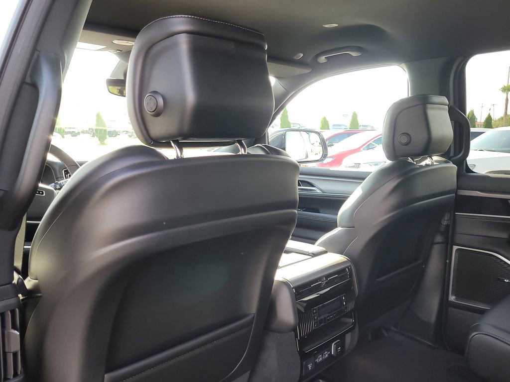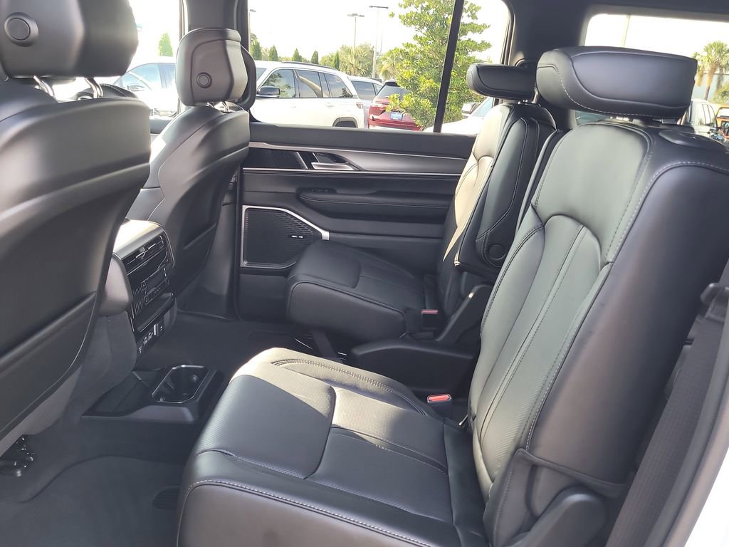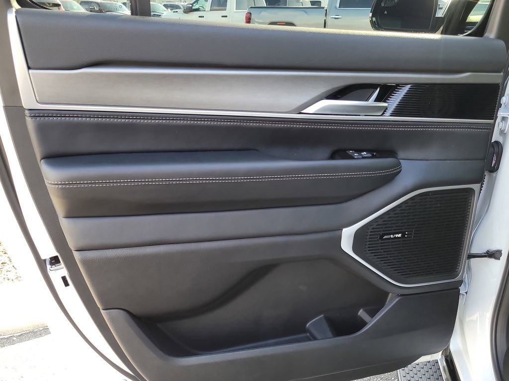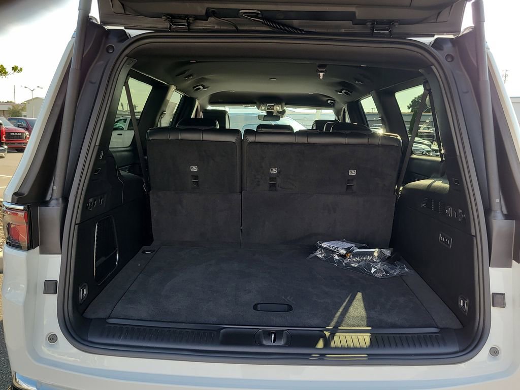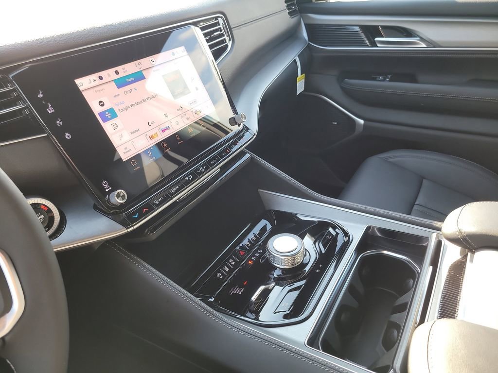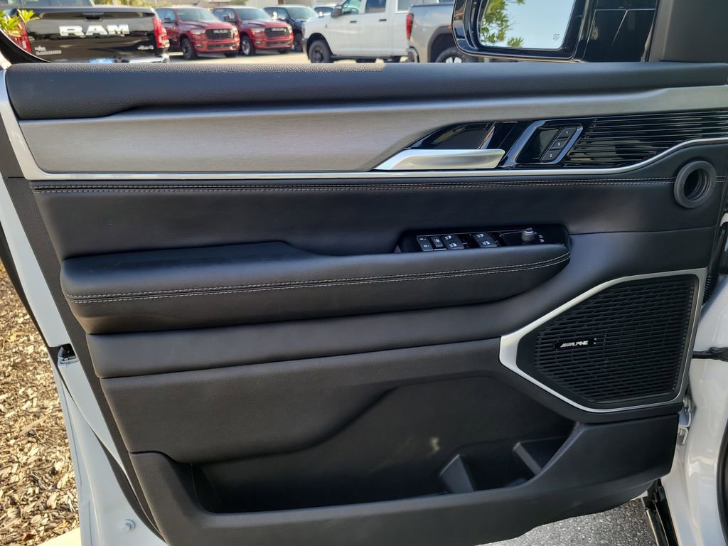 HD Trailer Tow Package (118 MPH Maximum Speed Calibration, 2 Speed On Demand Transfer Case, Electronic Rear Limited Slip Differential, Heavy-Duty Engine Cooling, Removable Rear Tow Hook, Selec-Speed Control, Trailer Brake Control, Trailer Hitch Zoom, and Vapor Tow Hooks), Quick Order Package 25J, 10 Speakers, 3rd row seats: bench, 4-Wheel Disc Brakes, ABS brakes, Air Conditioning, Alloy wheels, AM/FM radio: SiriusXM with 360L, Anti-whiplash front head restraints, Apple CarPlay/Android Auto, Audio memory, Auto Adjust In Reverse Exterior Mirrors, Auto-dimming door mirrors, Auto-Dimming Exterior Driver Mirror, Auto-dimming Rear-View mirror, Auto-leveling suspension, Automatic temperature control, Brake assist, Bumpers: body-color, Compass, Delay-off headlights, Driver door bin, Driver vanity mirror, Driver's Seat Mounted Armrest, Dual front impact airbags, Dual front side impact airbags, Electronic Stability Control, Emergency communication system: Jeep Connect, Exterior Mirrors Approach Lamps, Exterior Mirrors w/Memory, Exterior Mirrors w/Supplemental Signals, Four wheel independent suspension, Front anti-roll bar, Front Bucket Seats, Front Center Armrest w/Storage, Front dual zone A/C, Front fog lights, Front License Plate Bracket, Front reading lights, Fully automatic headlights, Garage door transmitter, Genuine wood console insert, Genuine wood dashboard insert, Genuine wood door panel insert, Heated door mirrors, Heated Exterior Mirrors, Heated front seats, Heated rear seats, Heated steering wheel, Illuminated entry, Knee airbag, Leather Trimmed Bucket Seats, Low tire pressure warning, Memory seat, Navigation System, Normal Duty Suspension, Occupant sensing airbag, Outside temperature display, Overhead airbag, Overhead console, Panic alarm, ParkView Rear Back-Up Camera, Passenger door bin, Passenger seat mounted armrest, Passenger vanity mirror, Power adjustable front head restraints, Power door mirrors, Power driver seat, Power Liftgate, Power passenger seat, Power steering, Power windows, Radio data system, Radio: Uconnect 5 Nav w/10.1" Display, Rain sensing wipers, Rear air conditioning, Rear anti-roll bar, Rear reading lights, Rear seat center armrest, Rear window defroster, Rear window wiper, Reclining 3rd row seat, Remote keyless entry, Security system, Speed control, Speed-sensing steering, Speed-Sensitive Wipers, Split folding rear seat, Steering wheel memory, Steering wheel mounted audio controls, Tachometer, Telescoping steering wheel, Tilt steering wheel, Traction control, Trip computer, Turn signal indicator mirrors, Variably intermittent wipers, Ventilated front seats, Voltmeter, and Wheels: 20" x 9.0" Premium 2 Aluminum.