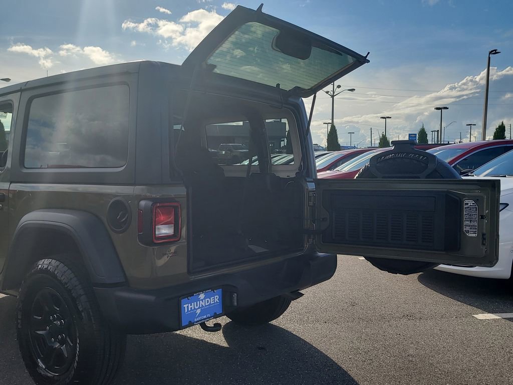 Quick Order Package 22B Sport, Wrangler Sport, FCA US LLC Certified Pre-Owned Certified, 2D Sport Utility, 2.0L I4 DOHC, 8-Speed Automatic, 4WD, 41, Black Cloth, 110 MPH Vehicle Max Speed Calibration, 3.45 Overall Top Gear Ratio, 4-Wheel Disc Brakes, 8 Speakers, ABS brakes, Air Conditioning, AM/FM radio: SiriusXM, Apple CarPlay/Android Auto, Black 3-Piece Hard Top, Brake assist, Cloth Low-Back Bucket Seats, Compass, Deep Tint Sunscreen Windows, Delay-off headlights, Driver door bin, Driver vanity mirror, Dual front impact airbags, Dual front side impact airbags, Electronic Stability Control, Freedom Panel Storage Bag, Front anti-roll bar, Front Bucket Seats, Front Center Armrest w/Storage, Front fog lights, Front reading lights, Illuminated entry, Integrated roll-over protection, Low tire pressure warning, MOPAR All-Weather Floor Mats, Normal Duty Suspension, Occupant sensing airbag, Outside temperature display, Overhead airbag, Panic alarm, ParkView Rear Back-Up Camera, Passenger door bin, Passenger vanity mirror, Power steering, Power windows, Radio data system, Radio: Uconnect 5 w/12.3" Display, Rear anti-roll bar, Rear reading lights, Rear Window Defroster, Rear Window Wiper/Washer, Remote keyless entry, Speed control, Steering wheel mounted audio controls, Stop-Start Dual Battery System, Tachometer, Telescoping steering wheel, Tilt steering wheel, Traction control, Trip computer, Variably intermittent wipers, and Wheels: 17" x 7.5" Black Steel Styled.