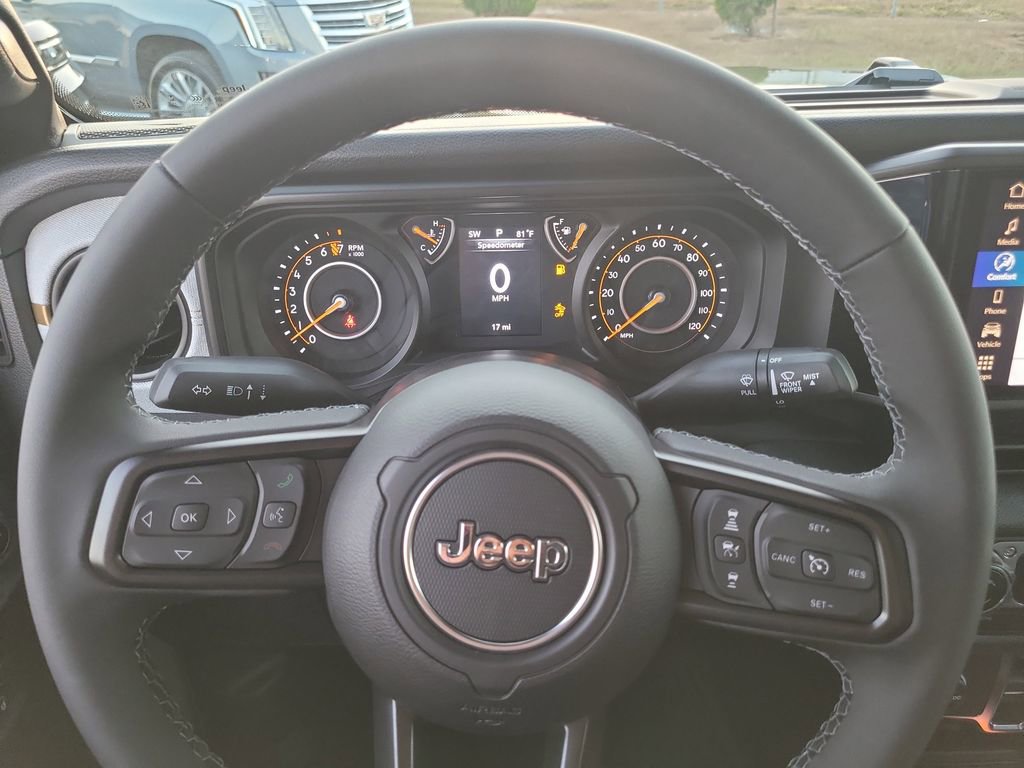Dark Sky Appearance Package (Body Color Fender Flares (2-Piece), Daytime Running Lamp System, Mold In Color Bumper w/Gloss Black, and Performance Hood), Quick Order Package 24S Sport S (Advanced Brake Assist, Automatic Headlamps, Deep Tint Sunscreen Windows, Full Speed Forward Collision Warning Plus, Normal Duty Plus Suspension, Power Heated Mirrors, Premium Wrapped Steering Wheel, Security Alarm, Sun Visors w/Illuminated Vanity Mirrors, and Wheels: 17" x 7.5" Gray), Safety Group (Auto High Beam Headlamp Control, Blind Spot & Cross Path Detection, and ParkSense Rear Park Assist System), Trailer Tow & Aux Switch Group (Auxiliary Switches, Class IV Receiver Hitch, Heavy-Duty Engine Cooling, and Trailer Hitch Zoom), 110 MPH Vehicle Max Speed Calibration, 3.73 Rear Axle Ratio, 4-Wheel Disc Brakes, 8 Speakers, ABS brakes, Air Conditioning, AM/FM radio: SiriusXM with 360L, Apple CarPlay/Android Auto, Body Color 3-Piece Hard Top, Brake assist, Cloth Low-Back Bucket Seats, Compass, Delay-off headlights, Driver door bin, Driver vanity mirror, Dual front impact airbags, Dual front side impact airbags, Electronic Stability Control, Freedom Panel Storage Bag, Front anti-roll bar, Front Bucket Seats, Front Center Armrest w/Storage, Front fog lights, Front reading lights, Illuminated entry, Integrated roll-over protection, Low tire pressure warning, Manufacturer's Statement of Origin, MOPAR All-Weather Slush Mats, Mopar Bright Door Sills, MOPAR Spray In Bedliner, Normal Duty Suspension, Occupant sensing airbag, Outside temperature display, Overhead airbag, Panic alarm, ParkView Rear Back-Up Camera, Passenger door bin, Passenger vanity mirror, Power steering, Power windows, Radio data system, Radio: Uconnect 5 w/12.3" Display, Rear anti-roll bar, Rear reading lights, Rear Sliding Window, Rear Window Defroster, Remote keyless entry, Speed control, Split folding rear seat, Steering wheel mounted audio controls, Tachometer, Telescoping steering wheel, Tilt steering wheel, Traction control, Trip computer, Variably intermittent wipers, Voltmeter, and Wheels: 17" x 7.5" Black Steel Styled.
