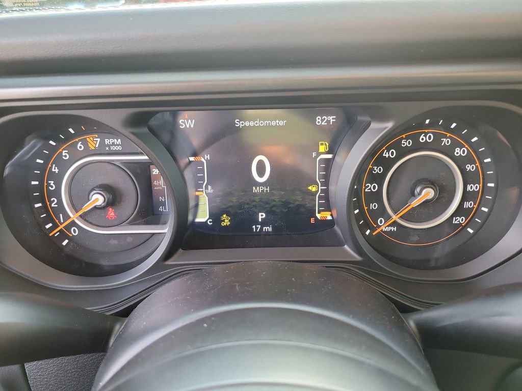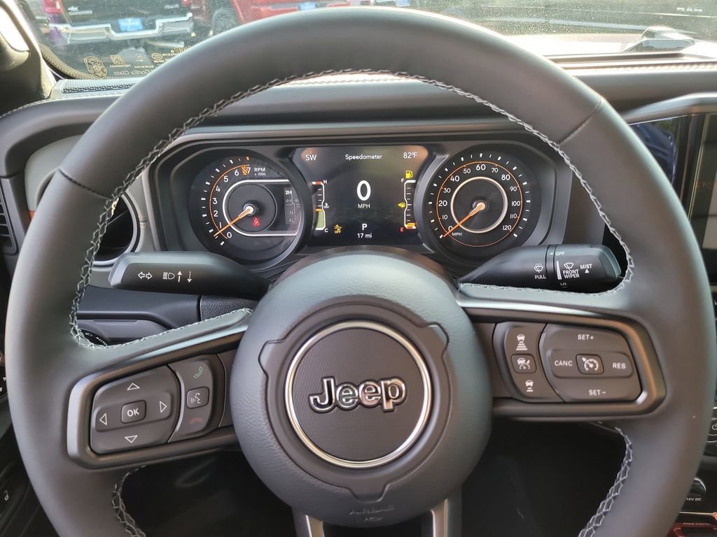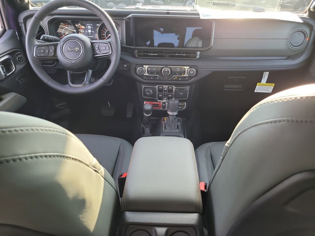 Quick Order Package 24A Mojave X (Alpine Premium Audio System, Auto High Beam Headlamp Control, Auto-Dimming Rear-View Mirror, Blind Spot & Cross Path Detection, Bluetooth Wireless Speaker, Body Color 3-Piece Hard Top, Body Color Rubicon Highline Flare, Freedom Panel Storage Bag, Full Length Floor Console Premium Armrest, Heated Front Seats, Heated Steering Wheel, Integrated Off-Road Camera, Integrated Voice Command w/Bluetooth, Leather Trimmed Bucket Seats, Leather Wrapped Park Brake Handle, Leather Wrapped Shift Knob, Mojave Top Hood Decal, MOPAR Hardtop Headliner, ParkSense Rear Park Assist System, Power 4-Way Driver Lumbar Adjust, Power 4-Way Passenger Lumbar Adjust, Power Adjust 8-Way Driver Seat, Power Adjust 8-Way Front Passenger Seat, Premium Door Trim Panel, Radio: Uconnect 5 Nav w/12.3" Display, Rear Armrest w/Cupholder Seat, Rear Sliding Window, Rear Window Defroster, Steel Front Bumper, Steel Rear Bumper, Universal Garage Door Opener, and USB Host Flip), 4-Wheel Disc Brakes, 4.10 Rear Axle Ratio, 8 Speakers, ABS brakes, Air Conditioning, Alloy wheels, AM/FM radio: SiriusXM with 360L, Apple CarPlay/Android Auto, Automatic temperature control, Brake assist, Compass, Delay-off headlights, Driver door bin, Driver vanity mirror, Dual front impact airbags, Dual front side impact airbags, Electronic Stability Control, Emergency communication system: Jeep Connect, Front anti-roll bar, Front Bucket Seats, Front Center Armrest w/Storage, Front dual zone A/C, Front fog lights, Front reading lights, Fully automatic headlights, Heated door mirrors, Heavy Duty Suspension w/Gas Shocks, Illuminated entry, Integrated roll-over protection, Low tire pressure warning, Manufacturer's Statement of Origin, MOPAR All-Weather Slush Mats, Mopar Bright Door Sills, MOPAR Doors Off Mirror Kit, MOPAR Hard Tri-Fold Tonneau Cover, MOPAR Spray In Bedliner, Occupant sensing airbag, Outside temperature display, Overhead airbag, Panic alarm, Passenger door bin, Passenger vanity mirror, Power door mirrors, Power steering, Power windows, Premium Cloth Seats w/Sport Bolsters, Radio data system, Radio: Uconnect 5 w/12.3" Display, Rear anti-roll bar, Rear reading lights, Remote keyless entry, Security system, Speed control, Split folding rear seat, Steering wheel mounted audio controls, Tachometer, Telescoping steering wheel, Tilt steering wheel, Traction control, Trip computer, Variably intermittent wipers, Voltmeter, and Wheels: 17" x 7.5" Dark Gray Painted.