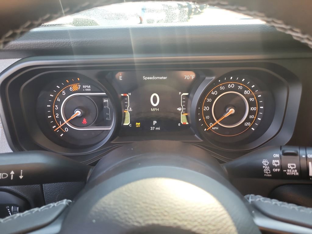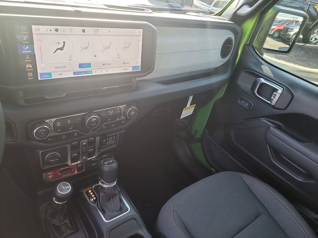 Convenience Group (2-Door Passive Entry, Front Door Locks, Air Conditioning with Auto Temp Control, Air Filtering, Cluster 7.0" TFT Color Display, Emergency/Assistance Call, Heated Front Seats, Heated Steering Wheel, and Universal Garage Door Opener), Quick Order Package 23W Willys (4-Wheel Drive Swing Gate Decal, 7 and 4 Pin Wiring Harness, Advanced Brake Assist, Automatic Headlamps, Auxiliary Switches, Black Grille with Gloss Black Rings, Class II Receiver Hitch, Conventional Differential Front Axle, Corning Gorilla Glass, Dana M210 Wide HD Tube Front Axle, Dana M220 Wide Rear Axle, Daytime Running Lamps LED Accents, Deep Tint Sunscreen Windows, E-Locker Rear Axle, Enhanced Adaptive Cruise Control, Front LED Fog Lamps, Full Speed Forward Collision Warning Plus, Increased Travel Export Tuned Suspension, Injection Molded Black Rear Bumper, LED Premium Reflector Headlamps, Mold in Color Bumper with Gloss Black, Molded in Color Rubicon Highline Flare, MOPAR All-Weather Floor Mats, Off-Road Plus Mode, Power Heated Mirrors, Premium Wrapped Steering Wheel, Security Alarm, Sun Visors with Illuminated Vanity Mirrors, Wheels: 17" x 7.5" Painted Black, and Willys Hood Decal), Quick Order Package 24W Willys, Safety Group (Auto High Beam Headlamp Control, Blind Spot and Cross Path Detection, LED Taillamps, and ParkSense Rear Park Assist System), 12.3" Touchscreen Display, 4-Wheel Disc Brakes, 4G LTE Wi-Fi Hot Spot, 8 Speakers, ABS brakes, Air Conditioning, AM/FM radio: SiriusXM with 360L, Apple CarPlay, Apple CarPlay/Android Auto, Aux Battery, Black 3-Piece Hard Top, Brake assist, Compass, Connectivity - US/Canada, Delay-off headlights, Driver door bin, Driver vanity mirror, Dual front impact airbags, Dual front side impact airbags, Electronic Stability Control, For More Info, Call 800-643-2112, Freedom Panel Storage Bag, Front anti-roll bar, Front Bucket Seats, Front Center Armrest w/Storage, Front fog lights, Front reading lights, Google Android Auto, Illuminated entry, Integrated Center Stack Radio, Integrated roll-over protection, Low tire pressure warning, Myflexcare Service Plan, No Soft Top, Non-Lock Fuel Cap Without Discriminator, Normal Duty Suspension, Occupant sensing airbag, Outside temperature display, Overhead airbag, Panic alarm, ParkView Rear Back-Up Camera, Passenger door bin, Passenger vanity mirror, Power steering, Power windows, Radio data system, Radio: Uconnect 5 with 12.3" Display, Rear anti-roll bar, Rear reading lights, Rear Window Defroster, Rear Window Wiper/Washer, Remote keyless entry, SiriusXM Radio Service, SiriusXM with 360L, Speed control, Split folding rear seat, Steering wheel mounted audio controls, Stop-Start Dual Battery System, Tachometer, Telescoping steering wheel, Tilt steering wheel, Traction control, Trip computer, Variably intermittent wipers, and Wheels: 17" x 7.5" Black Steel Styled.