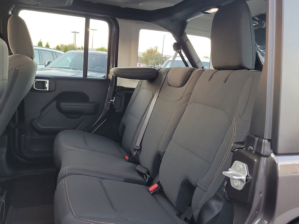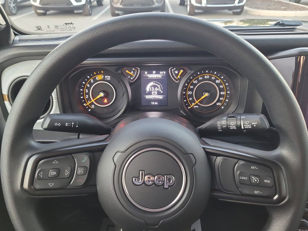 Quick Order Package 22B Sport, 3.45 Overall Top Gear Ratio, 4-Wheel Disc Brakes, 8 Speakers, ABS brakes, Air Conditioning, AM/FM radio: SiriusXM with 360L, Apple CarPlay/Android Auto, Aux Battery, Black 3-Piece Hard Top, Brake assist, Cloth Low-Back Bucket Seats, Compass, Delay-off headlights, Driver door bin, Driver vanity mirror, Dual front impact airbags, Dual front side impact airbags, Electronic Stability Control, Freedom Panel Storage Bag, Front anti-roll bar, Front Bucket Seats, Front Center Armrest w/Storage, Front fog lights, Front reading lights, Illuminated entry, Integrated roll-over protection, Low tire pressure warning, MOPAR All-Weather Floor Mats, Non-Lock Fuel Cap w/o Discriminator, Normal Duty Suspension, Occupant sensing airbag, Outside temperature display, Overhead airbag, Panic alarm, ParkView Rear Back-Up Camera, Passenger door bin, Passenger vanity mirror, Power steering, Power windows, Radio data system, Radio: Uconnect 5 w/12.3" Display, Rear anti-roll bar, Rear reading lights, Rear Window Defroster, Rear Window Wiper/Washer, Remote keyless entry, Speed control, Split folding rear seat, Steering wheel mounted audio controls, Stop-Start Dual Battery System, Tachometer, Telescoping steering wheel, Tilt steering wheel, Traction control, Trip computer, Variably intermittent wipers, and Wheels: 17" x 7.5" Black Steel Styled.