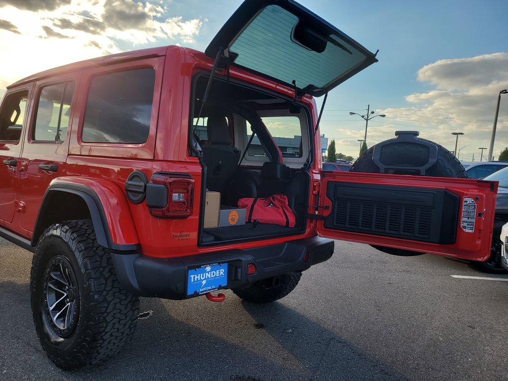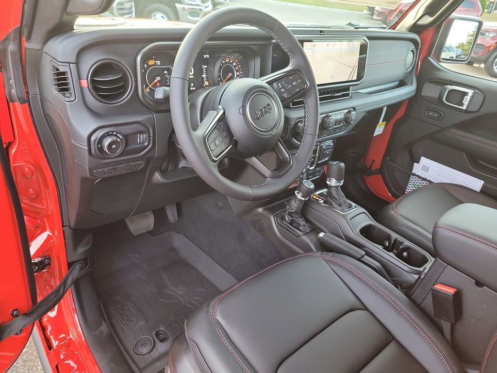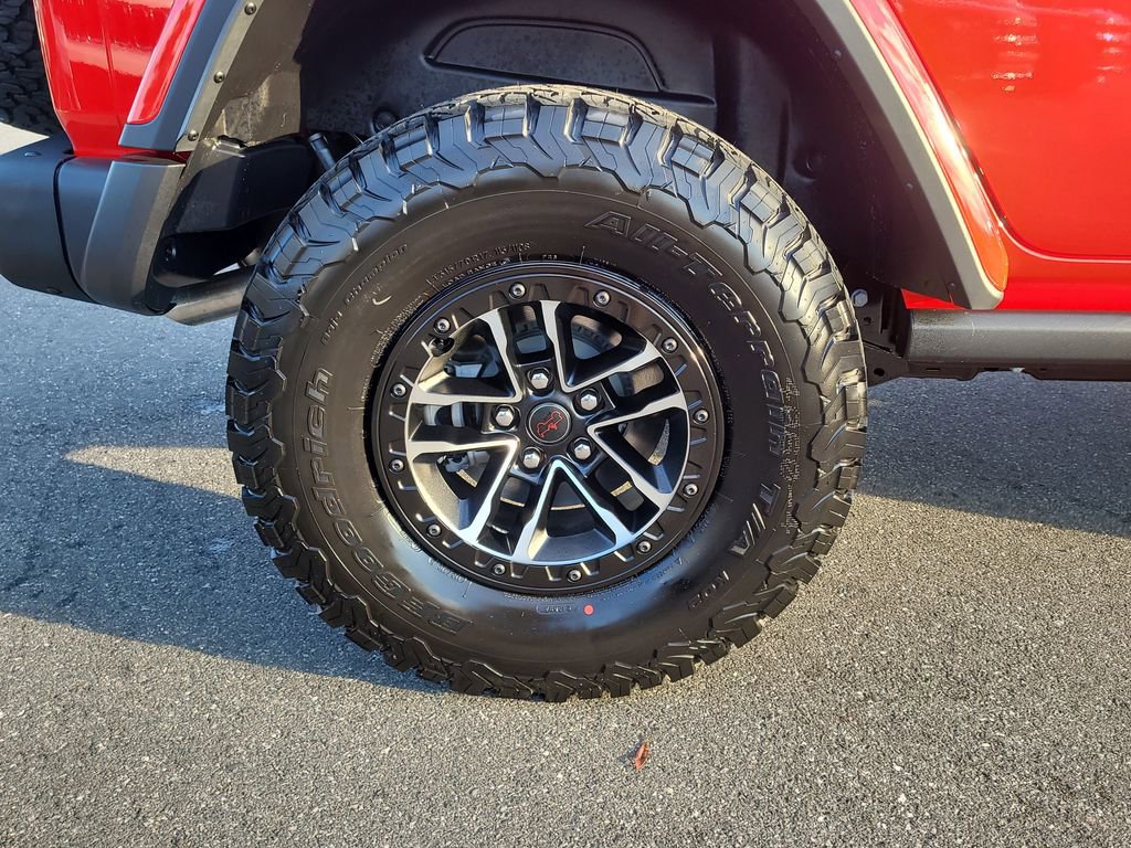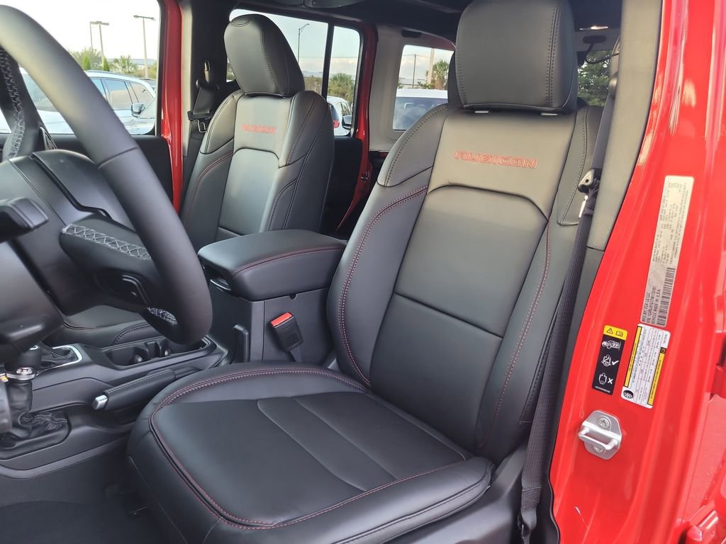 Quick Order Package 24Y Rubicon X (12.3" Touchscreen Display, 4G LTE Wi-Fi Hot Spot, Acoustic Front Seat Area Carpet, Acoustic Laminated Front Door Glass, Alpine Premium Audio System, Apple CarPlay, Auto High Beam Headlamp Control, Auto-Dimming Rear-View Mirror, Blind Spot & Cross Path Detection, Body Color 3-Piece Hard Top, Body Color Rubicon Highline Flare, Connected Travel & Traffic Services, Connectivity - US/Canada, Freedom Panel Storage Bag, Google Android Auto, HD Radio, Heated Front Seats, Heated Steering Wheel, Integrated Off-Road Camera, Integrated Voice Command w/Bluetooth, Leather Wrapped Park Brake Handle, Leather Wrapped Shift Knob, MOPAR Hardtop Headliner, Nappa Leather Seats, ParkSense Rear Park Assist System, Power 4-Way Driver Lumbar Adjust, Power 4-Way Passenger Lumbar Adjust, Power Adjust 8-Way Driver Seat, Power Adjust 8-Way Front Passenger Seat, Premium Door Trim Panel, Radio: Uconnect 5 Nav w/12.3" Display, Rear Window Defroster, Rear Window Wiper/Washer, SiriusXM w/360L, Steel Front Bumper, Steel Rear Bumper, and Universal Garage Door Opener), Trailer Tow & Aux Switch Group, Trailer Tow Prep Package, Xtreme 35" Tire Package (35" Tire Suspension, Anti-Lock 4-Wheel Disc Perf Brakes, and Wheels: 17" x 8" Machined w/Black Pockets), 4-Wheel Disc Brakes, 8 Speakers, ABS brakes, Air Conditioning, Alloy wheels, AM/FM radio: SiriusXM with 360L, Apple CarPlay/Android Auto, Automatic temperature control, Aux Battery, Brake assist, Cloth Low-Back Bucket Seats, Compass, Delay-off headlights, Driver door bin, Driver vanity mirror, Dual front impact airbags, Dual front side impact airbags, Electronic Stability Control, Emergency communication system: Jeep Connect, For More Info, Call 800-643-2112, Front anti-roll bar, Front Bucket Seats, Front Center Armrest w/Storage, Front dual zone A/C, Front fog lights, Front License Plate Bracket, Front reading lights, Fully automatic headlights, Heated door mirrors, Illuminated entry, Integrated Center Stack Radio, Integrated roll-over protection, Jeep Trail Rated Kit, Low tire pressure warning, MOPAR All-Weather Floor Mats, MOPAR Doors Off Mirror Kit, MOPAR Hinge-Gate Reinforcement, MOPAR Tool Kit JPP/Jeep, Non-Lock Fuel Cap w/o Discriminator, Occupant sensing airbag, Outside temperature display, Overhead airbag, Panic alarm, ParkView Rear Back-Up Camera, Passenger door bin, Passenger vanity mirror, Performance Suspension, Power door mirrors, Power steering, Power Top Quarter Window Storage Bag, Power windows, Radio data system, Radio: Uconnect 5 w/12.3" Display, Rear anti-roll bar, Rear reading lights, Remote keyless entry, Removable Rear Quarter Windows, Security system, SiriusXM Radio Service, Sky 1-Touch Power Top, Speed control, Split folding rear seat, Steering wheel mounted audio controls, Stop-Start Dual Battery System, Tachometer, Telescoping steering wheel, Tilt steering wheel, Traction control, Trip computer, Variably intermittent wipers, Voltmeter, Warn Winch, Wheel Flare Extensions, and Wheels: 17" x 7.5" Machined/Painted Black.