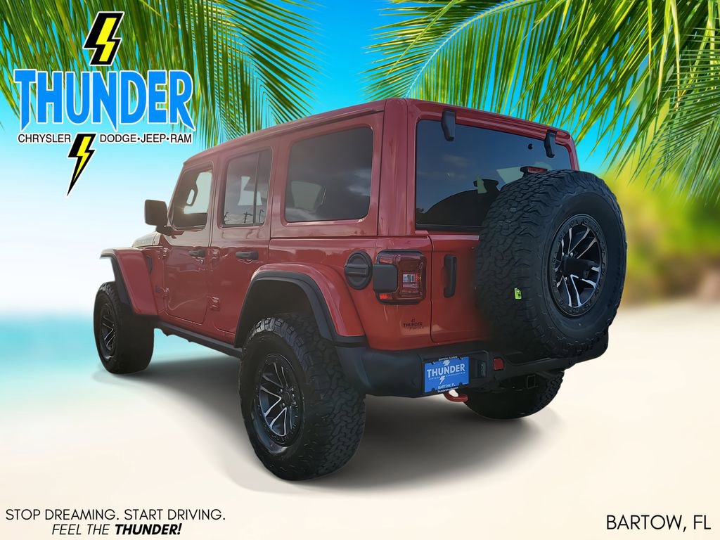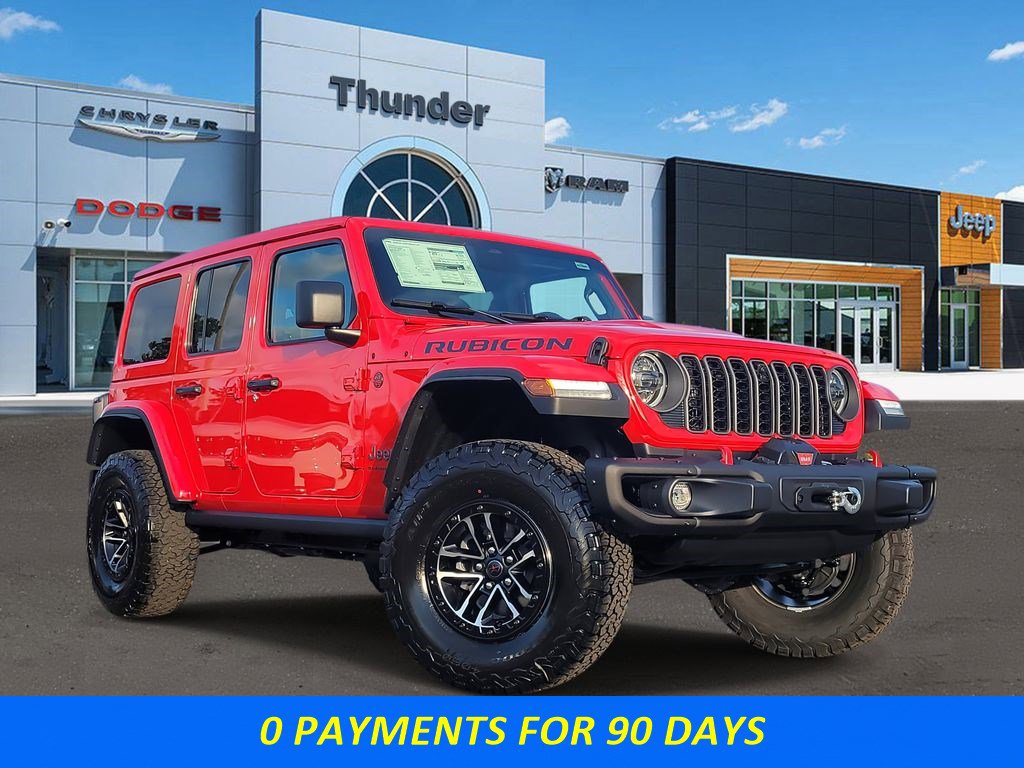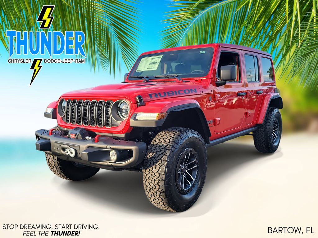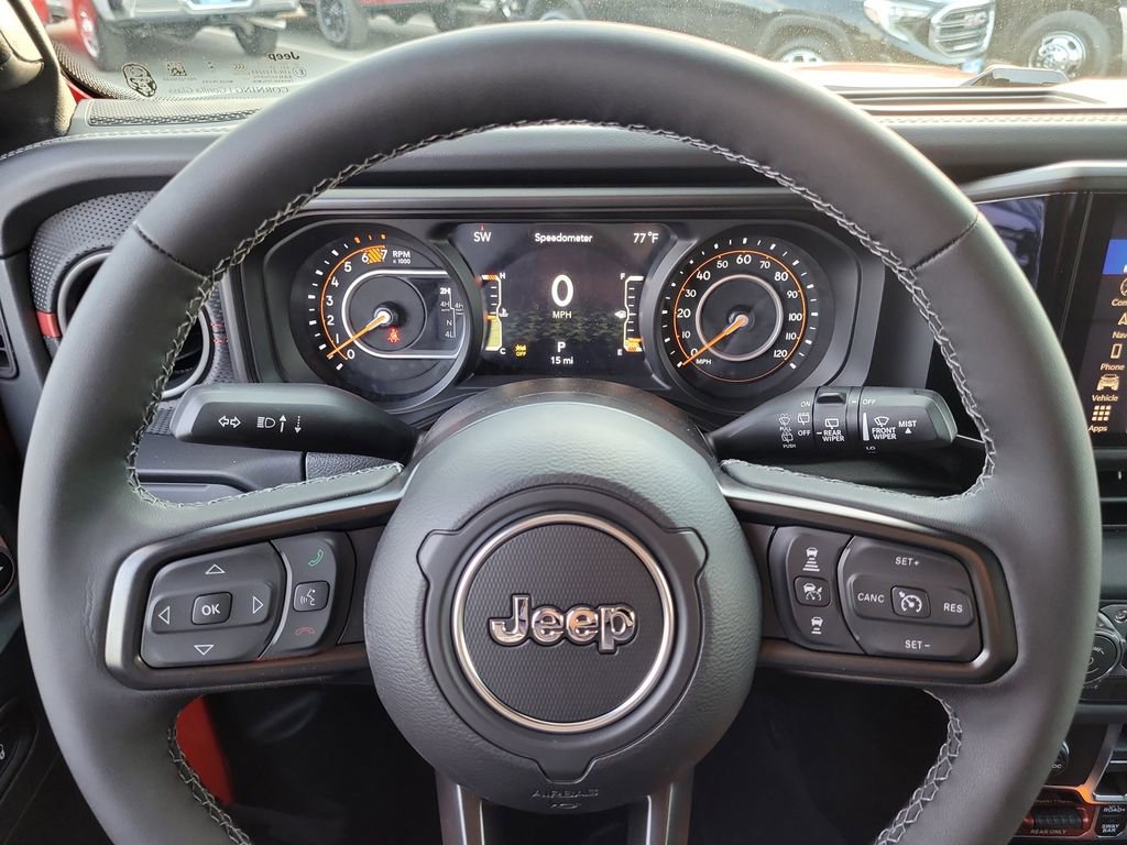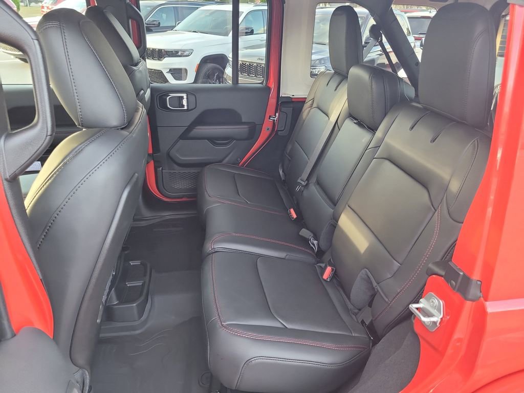 Quick Order Package 24Y Rubicon X (12.3" Touchscreen Display, 4G LTE Wi-Fi Hot Spot, Acoustic Front Seat Area Carpet, Acoustic Laminated Front Door Glass, Alpine Premium Audio System, Apple CarPlay, Auto High Beam Headlamp Control, Auto-Dimming Rear-View Mirror, Blind Spot & Cross Path Detection, Body Color 3-Piece Hard Top, Body Color Rubicon Highline Flare, Connected Travel & Traffic Services, Connectivity - US/Canada, Freedom Panel Storage Bag, Google Android Auto, HD Radio, Heated Front Seats, Heated Steering Wheel, Integrated Off-Road Camera, Integrated Voice Command w/Bluetooth, Leather Wrapped Park Brake Handle, Leather Wrapped Shift Knob, MOPAR Hardtop Headliner, Nappa Leather Seats, ParkSense Rear Park Assist System, Power 4-Way Driver Lumbar Adjust, Power 4-Way Passenger Lumbar Adjust, Power Adjust 8-Way Driver Seat, Power Adjust 8-Way Front Passenger Seat, Premium Door Trim Panel, Radio: Uconnect 5 Nav w/12.3" Display, Rear Window Defroster, Rear Window Wiper/Washer, SiriusXM w/360L, Steel Front Bumper, Steel Rear Bumper, and Universal Garage Door Opener), Trailer Tow & Aux Switch Group, Trailer Tow Prep Package, Xtreme 35" Tire Package (35" Tire Suspension, Anti-Lock 4-Wheel Disc Perf Brakes, and Wheels: 17" x 8" Machined w/Black Pockets), 4-Wheel Disc Brakes, 8 Speakers, ABS brakes, Air Conditioning, Alloy wheels, AM/FM radio: SiriusXM with 360L, Apple CarPlay/Android Auto, Automatic temperature control, Aux Battery, Brake assist, Cloth Low-Back Bucket Seats, Compass, Delay-off headlights, Driver door bin, Driver vanity mirror, Dual front impact airbags, Dual front side impact airbags, Electronic Stability Control, Emergency communication system: Jeep Connect, For More Info, Call 800-643-2112, Front anti-roll bar, Front Bucket Seats, Front Center Armrest w/Storage, Front dual zone A/C, Front fog lights, Front License Plate Bracket, Front reading lights, Fully automatic headlights, Heated door mirrors, Illuminated entry, Integrated Center Stack Radio, Integrated roll-over protection, Jeep Trail Rated Kit, Low tire pressure warning, MOPAR All-Weather Floor Mats, MOPAR Doors Off Mirror Kit, MOPAR Hinge-Gate Reinforcement, MOPAR Tool Kit JPP/Jeep, Non-Lock Fuel Cap w/o Discriminator, Occupant sensing airbag, Outside temperature display, Overhead airbag, Panic alarm, ParkView Rear Back-Up Camera, Passenger door bin, Passenger vanity mirror, Performance Suspension, Power door mirrors, Power steering, Power Top Quarter Window Storage Bag, Power windows, Radio data system, Radio: Uconnect 5 w/12.3" Display, Rear anti-roll bar, Rear reading lights, Remote keyless entry, Removable Rear Quarter Windows, Security system, SiriusXM Radio Service, Sky 1-Touch Power Top, Speed control, Split folding rear seat, Steering wheel mounted audio controls, Stop-Start Dual Battery System, Tachometer, Telescoping steering wheel, Tilt steering wheel, Traction control, Trip computer, Variably intermittent wipers, Voltmeter, Warn Winch, Wheel Flare Extensions, and Wheels: 17" x 7.5" Machined/Painted Black.