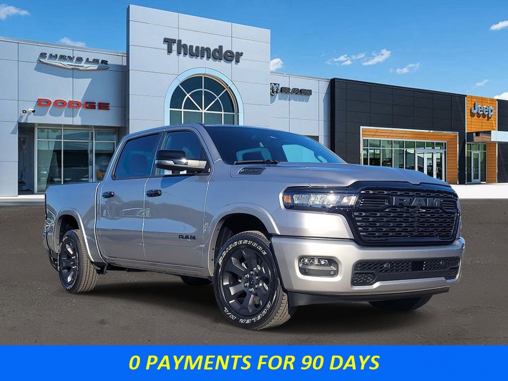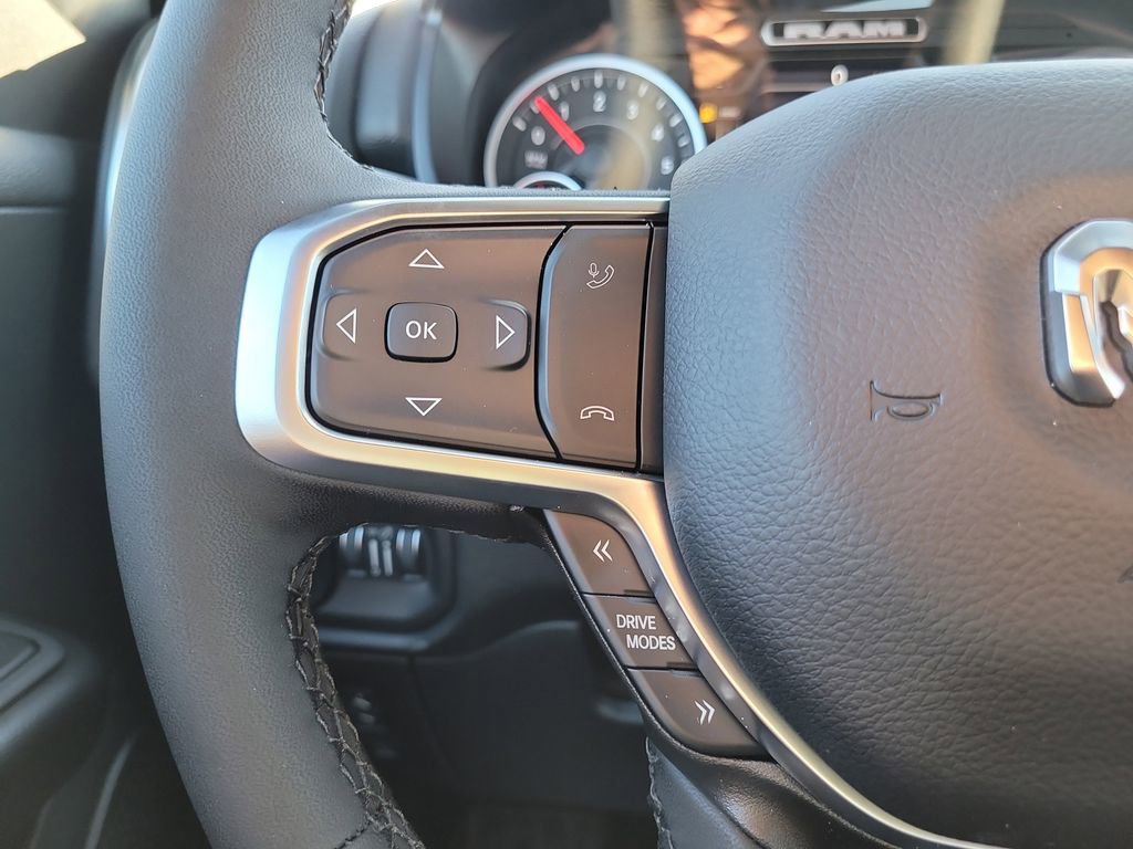 Bed Utility Group (Exterior 115V AC Outlet, MOPAR 4 Adjustable Cargo Tie-Down Hooks, MOPAR Spray In Bedliner, and Pick-Up Box Lighting), Big Horn Level 2 Equipment Group (115V Auxiliary Power Outlet, 115V Auxiliary Rear Power Outlet, 12" Touchscreen Display, 2nd Row In Floor Storage Bins, 3 Rear Seat Head Restraints, 4 Way Front Headrests, 400W Inverter, 4G LTE Wi-Fi Hot Spot, 9 Amplified Speakers w/Subwoofer, Air Conditioning ATC w/Dual Zone Control, Apple CarPlay, Auto Power-Folding Mirrors, Auto-Dimming Exterior Driver Mirror, Auto-Dimming Rear-View Mirror, Black Exterior Mirrors, Black Premium Power Mirrors, Body Color Fender Flares, Bucket Seats, Center Console Parts Module, Cluster 7.0" TFT Color Display, Configurable Drive Mode, Connected Travel & Traffic Services, Connectivity - US/Canada, Convex Wide-Angle Exterior Mirror Insert, Deluxe Cloth Bucket Seats, Disassociated Touchscreen Display, Exterior Mirrors Courtesy Lamps, Exterior Mirrors w/Heating Element, Exterior Mirrors w/Supplemental Signals, Front Seat Back Map Pockets, Full Length Floor Console, Global Telematics Box Module (TBM), Glove Box Lamp, Google Android Auto, GPS Antenna Input, GPS Navigation, HD Radio, Heated Front Seats, Heated Steering Wheel, Integrated Center Stack Radio, Integrated Voice Command w/Bluetooth, Leather Wrapped Steering Wheel, LED Dome Lamp w/On/Off Switch, LED Footwell Lighting, Manual Adjust 4-Way Front Passenger Seat, Media Hub w/2 Charge Only USBs, Overhead LED Lamps, Power 2-Way Driver Lumbar Adjust, Power Adjust 8-Way Driver Seat, Power Adjustable Pedals, Premium Overhead Console, Radio: Uconnect 5 Nav w/12.0" Display, Rear 60/40 Folding Seat, Rear Center Armrest, Rear Power Sliding Window, Rear Window Defroster, Remote Tailgate Release, Security Alarm, SiriusXM Radio Service, SiriusXM w/360L, Steering Wheel Mounted Audio Controls, Sun Visors w/Illuminated Vanity Mirrors, Universal Garage Door Opener, USB Host Flip, and Wheels: 20" x 9" Aluminum Chrome Clad (WRK)), Night Edition (Accent Color Door Handles, Accent Color Premium Power Mirrors, Accent Color Tailgate Handle, Anti-Spin Differential Rear Axle, Black Exterior Truck Badging, Black Headlamp Bezels, Black Interior Accents, Black Painted Exterior Mirrors Caps, Black Tail Lamp Bezels, Body Color Front Bumper, Body Color Rear Bumper w/Step Pads, Dual Exhaust w/Black Tips, Grille Black Surround Black Mesh, RAM Grille Badge - Black, and Wheels: 20" x 9.0" Aluminum Painted Clad), Quick Order Package 21Z Big Horn, 4-Wheel Disc Brakes, 48V Belt Starter Generator, 6 Speakers, ABS brakes, Air Conditioning, Alloy wheels, AM/FM radio, Apple CarPlay/Android Auto, Auto High-beam Headlights, Brake assist, Bumpers: chrome, Cloth Bucket Seats, Compass, Delay-off headlights, Driver door bin, Dual front impact airbags, Dual front side impact airbags, Electronic Stability Control, Front anti-roll bar, Front Bucket Seats, Front Center Armrest w/Storage, Front fog lights, Front License Plate Bracket, Front reading lights, Front wheel independent suspension, Fully automatic headlights, Heated door mirrors, Illuminated entry, Low tire pressure warning, Manual Adjust 4-Way Driver Seat, Manual Folding Exterior Mirrors, Manufacturer's Statement of Origin, MOPAR Front & Rear Rubber Floor Mats, Occupant sensing airbag, Outside temperature display, Overhead airbag, Overhead console, Panic alarm, ParkView Rear Back-Up Camera, Passenger door bin, Passenger vanity mirror, Power door mirrors, Power steering, Power windows, Radio data system, Radio: Uconnect 5 W w/8.4" Display, RAM Grille Badge - Chrome, Rear anti-roll bar, Rear step bumper, Rear Underseat Compartment Storage, Rear Wheelhouse Liners, Remote keyless entry, Speed control, Supplier Part Tracking (J-1), Tachometer, Telescoping steering wheel, Tilt steering wheel, Traction control, Trip computer, Variably intermittent wipers,