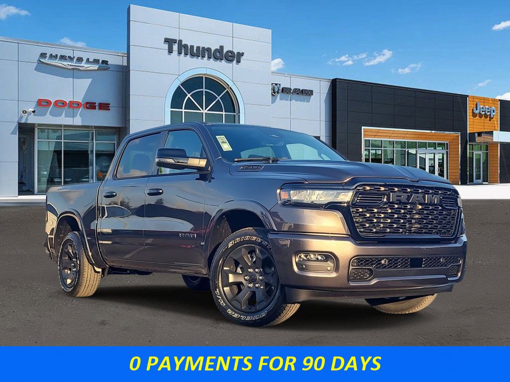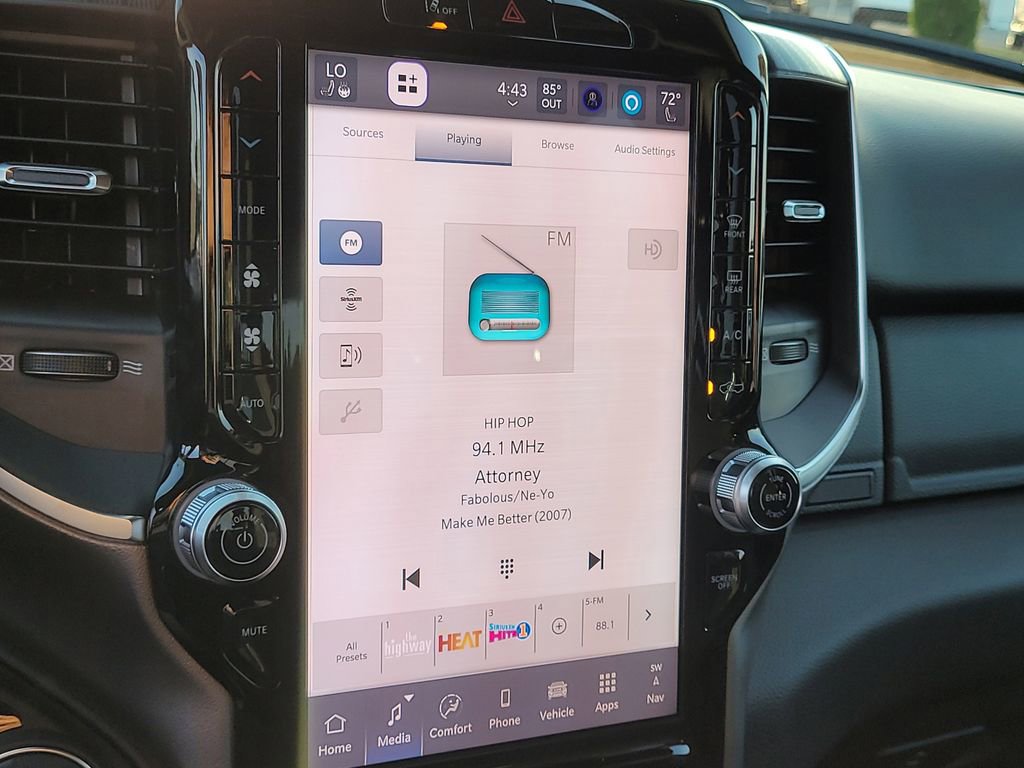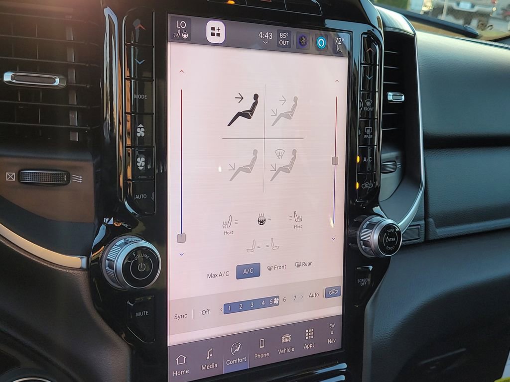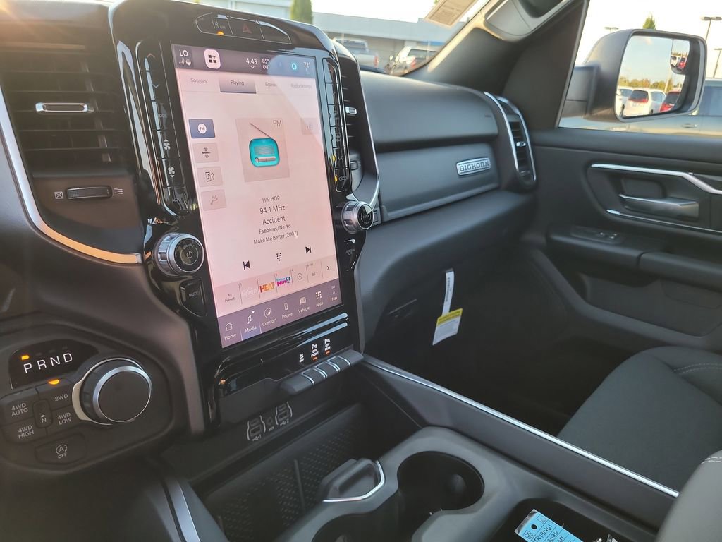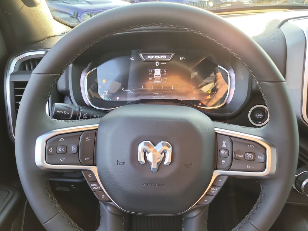 Big Horn Level 2 Equipment Group (115V Auxiliary Power Outlet, 115V Auxiliary Rear Power Outlet, 12" Touchscreen Display, 2nd Row In Floor Storage Bins, 3 Rear Seat Head Restraints, 4 Way Front Headrests, 400W Inverter, 4G LTE Wi-Fi Hot Spot, 9 Amplified Speakers w/Subwoofer, Air Conditioning ATC w/Dual Zone Control, Apple CarPlay, Auto Power-Folding Mirrors, Auto-Dimming Exterior Driver Mirror, Auto-Dimming Rear-View Mirror, Black Exterior Mirrors, Black Premium Power Mirrors, Body Color Fender Flares, Bucket Seats, Center Console Parts Module, Cluster 7.0" TFT Color Display, Configurable Drive Mode, Connected Travel & Traffic Services, Connectivity - US/Canada, Convex Wide-Angle Exterior Mirror Insert, Deluxe Cloth Bucket Seats, Disassociated Touchscreen Display, Exterior Mirrors Courtesy Lamps, Exterior Mirrors w/Heating Element, Exterior Mirrors w/Supplemental Signals, Front Seat Back Map Pockets, Full Length Floor Console, Global Telematics Box Module (TBM), Glove Box Lamp, Google Android Auto, GPS Antenna Input, GPS Navigation, HD Radio, Heated Front Seats, Heated Steering Wheel, Integrated Center Stack Radio, Integrated Voice Command w/Bluetooth, Leather Wrapped Steering Wheel, LED Dome Lamp w/On/Off Switch, LED Footwell Lighting, Manual Adjust 4-Way Front Passenger Seat, Media Hub w/2 Charge Only USBs, Overhead LED Lamps, Power 2-Way Driver Lumbar Adjust, Power Adjust 8-Way Driver Seat, Power Adjustable Pedals, Premium Overhead Console, Radio: Uconnect 5 Nav w/12.0" Display, Rear 60/40 Folding Seat, Rear Center Armrest, Rear Power Sliding Window, Rear Window Defroster, Remote Tailgate Release, Security Alarm, SiriusXM Radio Service, SiriusXM w/360L, Steering Wheel Mounted Audio Controls, Sun Visors w/Illuminated Vanity Mirrors, Universal Garage Door Opener, USB Host Flip, and Wheels: 20" x 9" Aluminum Chrome Clad (WRK)), Night Edition (Accent Color Door Handles, Accent Color Premium Power Mirrors, Accent Color Tailgate Handle, Anti-Spin Differential Rear Axle, Black Exterior Truck Badging, Black Headlamp Bezels, Black Interior Accents, Black Painted Exterior Mirrors Caps, Black Tail Lamp Bezels, Body Color Front Bumper, Body Color Rear Bumper w/Step Pads, Dual Exhaust w/Black Tips, Grille Black Surround Black Mesh, RAM Grille Badge - Black, and Wheels: 20" x 9.0" Aluminum Painted Clad), Quick Order Package 21Z Big Horn, 4-Wheel Disc Brakes, 48V Belt Starter Generator, 6 Speakers, ABS brakes, Air Conditioning, Alloy wheels, AM/FM radio, Apple CarPlay/Android Auto, Auto High-beam Headlights, Brake assist, Bumpers: chrome, Cloth Bucket Seats, Cluster 12" TFT Color Display, Compass, Delay-off headlights, Driver door bin, Dual front impact airbags, Dual front side impact airbags, Electronic Stability Control, Front anti-roll bar, Front Bucket Seats, Front Center Armrest w/Storage, Front fog lights, Front reading lights, Front wheel independent suspension, Fully automatic headlights, Heated door mirrors, Illuminated entry, Low tire pressure warning, Manual Adjust 4-Way Driver Seat, Manual Folding Exterior Mirrors, MOPAR Front & Rear Rubber Floor Mats, Occupant sensing airbag, Outside temperature display, Overhead airbag, Overhead console, Panic alarm, ParkView Rear Back-Up Camera, Passenger door bin, Passenger vanity mirror, Power door mirrors, Power steering, Power windows, Radio data system, Radio: Uconnect 5 W w/8.4" Display, RAM Grille Badge - Chrome, Rear anti-roll bar, Rear step bumper, Rear Wheelhouse Liners, Remote keyless entry, Speed control, Supplier Part Tracking (J-1), Tachometer, Telescoping steering wheel, Tilt steering wheel, Traction control, Trip computer, Variably intermittent wipers, Voltmeter, and Wheels: 18" x 8" Cast-Aluminum Painted.