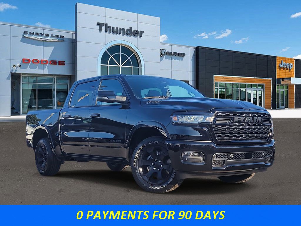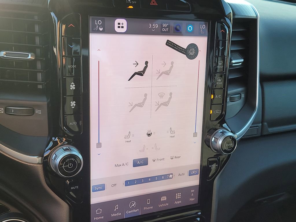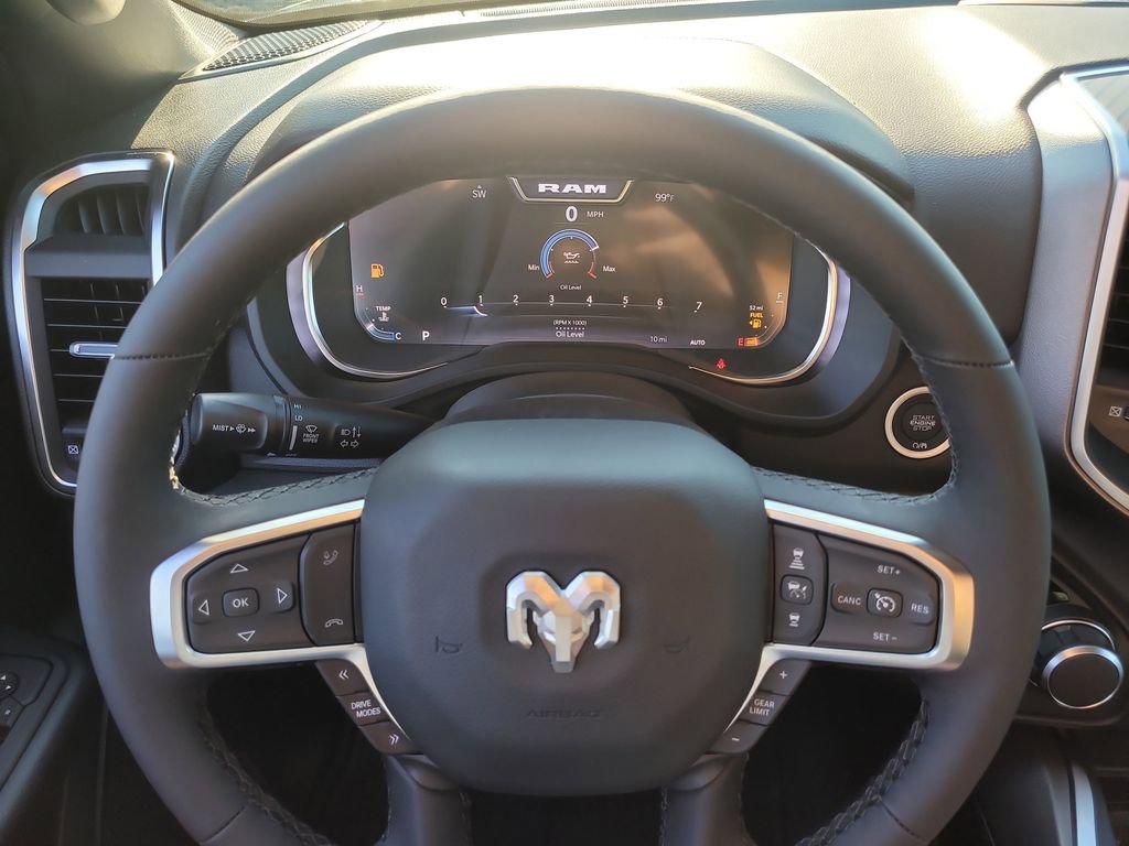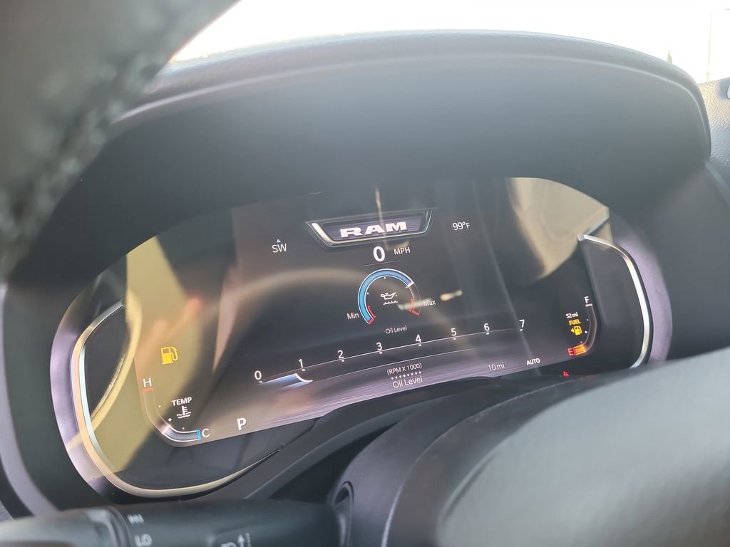 Big Horn Level 2 Equipment Group (115V Auxiliary Power Outlet, 115V Auxiliary Rear Power Outlet, 12" Touchscreen Display, 2nd Row In Floor Storage Bins, 3 Rear Seat Head Restraints, 4 Way Front Headrests, 400W Inverter, 4G LTE Wi-Fi Hot Spot, 9 Amplified Speakers w/Subwoofer, Air Conditioning ATC w/Dual Zone Control, Apple CarPlay, Auto Power-Folding Mirrors, Auto-Dimming Exterior Driver Mirror, Auto-Dimming Rear-View Mirror, Black Exterior Mirrors, Black Premium Power Mirrors, Body Color Fender Flares, Bucket Seats, Center Console Parts Module, Cluster 7.0" TFT Color Display, Configurable Drive Mode, Connected Travel & Traffic Services, Connectivity - US/Canada, Convex Wide-Angle Exterior Mirror Insert, Deluxe Cloth Bucket Seats, Disassociated Touchscreen Display, Exterior Mirrors Courtesy Lamps, Exterior Mirrors w/Heating Element, Exterior Mirrors w/Supplemental Signals, Front Seat Back Map Pockets, Full Length Floor Console, Global Telematics Box Module (TBM), Glove Box Lamp, Google Android Auto, GPS Antenna Input, GPS Navigation, HD Radio, Heated Front Seats, Heated Steering Wheel, Integrated Center Stack Radio, Integrated Voice Command w/Bluetooth, Leather Wrapped Steering Wheel, LED Dome Lamp w/On/Off Switch, LED Footwell Lighting, Manual Adjust 4-Way Front Passenger Seat, Media Hub w/2 Charge Only USBs, Overhead LED Lamps, Power 2-Way Driver Lumbar Adjust, Power Adjust 8-Way Driver Seat, Power Adjustable Pedals, Premium Overhead Console, Radio: Uconnect 5 Nav w/12.0" Display, Rear 60/40 Folding Seat, Rear Center Armrest, Rear Power Sliding Window, Rear Window Defroster, Remote Tailgate Release, Security Alarm, SiriusXM Radio Service, SiriusXM w/360L, Steering Wheel Mounted Audio Controls, Sun Visors w/Illuminated Vanity Mirrors, Universal Garage Door Opener, USB Host Flip, and Wheels: 20" x 9" Aluminum Chrome Clad (WRK)), Night Edition (Accent Color Door Handles, Accent Color Premium Power Mirrors, Accent Color Tailgate Handle, Anti-Spin Differential Rear Axle, Black Exterior Truck Badging, Black Headlamp Bezels, Black Interior Accents, Black Painted Exterior Mirrors Caps, Black Tail Lamp Bezels, Body Color Front Bumper, Body Color Rear Bumper w/Step Pads, Dual Exhaust w/Black Tips, Grille Black Surround Black Mesh, RAM Grille Badge - Black, and Wheels: 20" x 9.0" Aluminum Painted Clad), Quick Order Package 21Z Big Horn, 4-Wheel Disc Brakes, 48V Belt Starter Generator, 6 Speakers, ABS brakes, Air Conditioning, Alloy wheels, AM/FM radio, Apple CarPlay/Android Auto, Auto High-beam Headlights, Brake assist, Bumpers: chrome, Cloth Bucket Seats, Cluster 12" TFT Color Display, Compass, Delay-off headlights, Driver door bin, Dual front impact airbags, Dual front side impact airbags, Electronic Stability Control, Front anti-roll bar, Front Bucket Seats, Front Center Armrest w/Storage, Front fog lights, Front reading lights, Front wheel independent suspension, Fully automatic headlights, Heated door mirrors, Illuminated entry, Low tire pressure warning, Manual Adjust 4-Way Driver Seat, Manual Folding Exterior Mirrors, MOPAR Front & Rear Rubber Floor Mats, Occupant sensing airbag, Outside temperature display, Overhead airbag, Overhead console, Panic alarm, ParkView Rear Back-Up Camera, Passenger door bin, Passenger vanity mirror, Power door mirrors, Power steering, Power windows, Radio data system, Radio: Uconnect 5 W w/8.4" Display, RAM Grille Badge - Chrome, Rear anti-roll bar, Rear step bumper, Rear Wheelhouse Liners, Remote keyless entry, Speed control, Supplier Part Tracking (J-1), Tachometer, Telescoping steering wheel, Tilt steering wheel, Traction control, Trailer Brake Control, Trip computer, Variably intermittent wipers, Voltmeter, and Wheels: 18" x 8" Cast-Aluminum Painted.