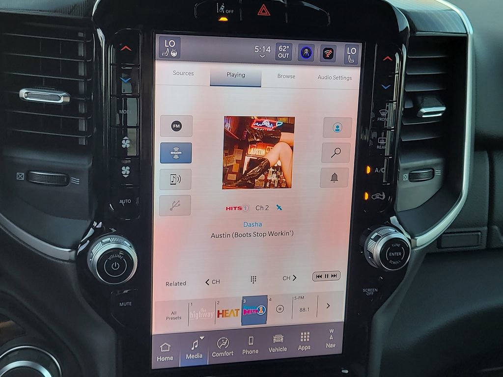BIG HORN LEVEL 2 EQUIPMENT GROUP -inc: SiriusXM Radio Service Power Adjustable Pedals Leather Wrapped Steering Wheel 12" Touchscreen Display Glove Box Lamp Auto Power-Folding Mirrors 115V Auxiliary Rear Power Outlet Media Hub w/2 Charge Only USBs Heated Front Seats Security Alarm Black Premium Power Mirrors Premium Overhead Console 9 Amplified Speakers w/Subwoofer Disassociated Touchscreen Display Body Color Fender Flares Remote Tailgate Release 115V Auxiliary Power Outlet LED Dome Lamp w/On/Off Switch Universal Garage Door Opener 2nd Row In Floor Storage Bins Sun Visors w/Illuminated Vanity Mirrors LED Footwell Lighting Rear Window Defroster Rear View Auto Dim Mirror Rear Power Sliding Window GPS Navigation Overhead LED Lamps Wheels: 20" x 9" Aluminum Chrome Clad (WRK) Tires: 275/55R20 OWL All Season Bridgestone Brand Tires Auto Dim Exterior Driver Mirror SiriusXM w/360L Connected Travel & Traffic Services Heated Steering Wheel Configurable Drive Mod