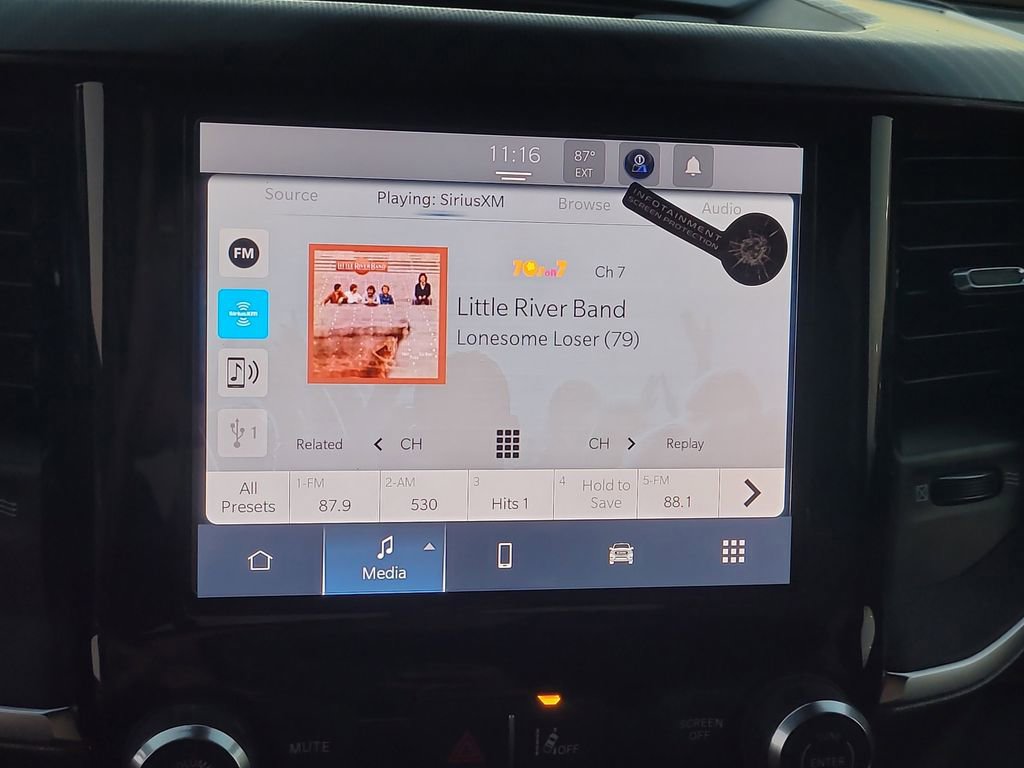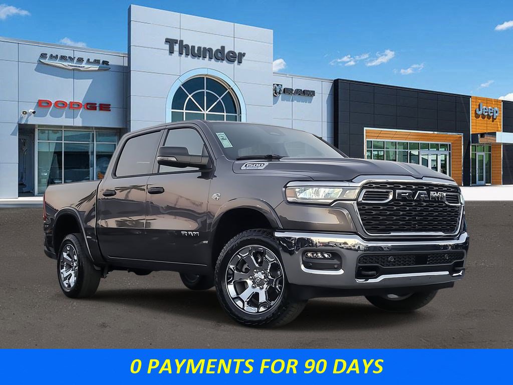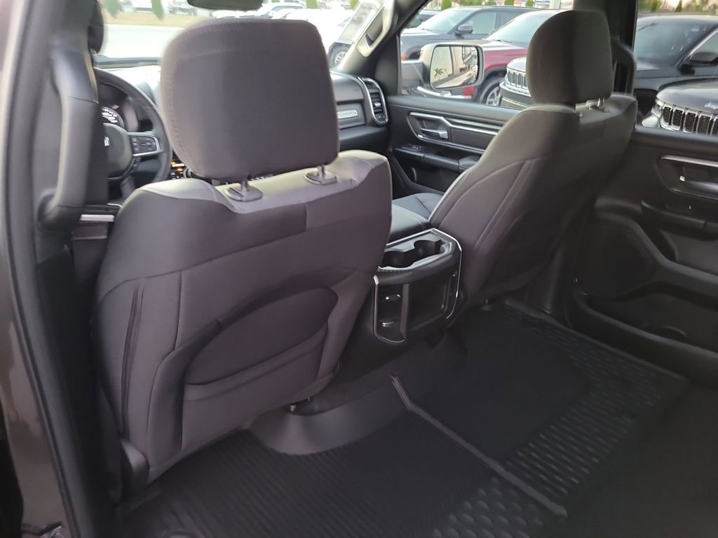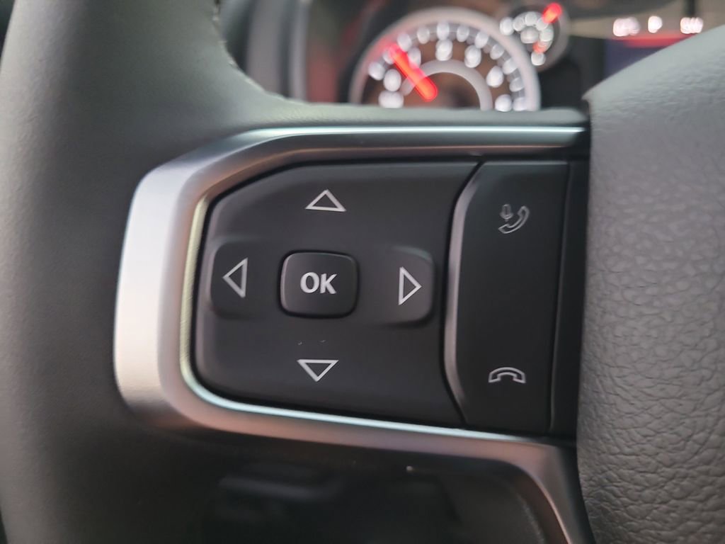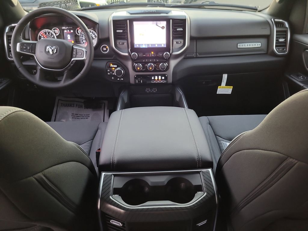 Bed Utility Group (Exterior 115V AC Outlet, MOPAR 4 Adjustable Cargo Tie-Down Hooks, MOPAR Spray In Bedliner, and Pick-Up Box Lighting), Big Horn Level 1 Equipment Group (115V Auxiliary Power Outlet, 2nd Row In Floor Storage Bins, 3 Rear Seat Head Restraints, 4 Way Front Headrests, 400W Inverter, Auto Power-Folding Mirrors, Auto-Dimming Exterior Driver Mirror, Auto-Dimming Rear-View Mirror, Black Exterior Mirrors, Black Premium Power Mirrors, Body Color Fender Flares, Bucket Seats, Center Console Parts Module, Convex Wide-Angle Exterior Mirror Insert, Deluxe Cloth Bucket Seats, Exterior Mirrors Courtesy Lamps, Exterior Mirrors w/Heating Element, Exterior Mirrors w/Supplemental Signals, Front Seat Back Map Pockets, Full Length Floor Console, Glove Box Lamp, Heated Front Seats, Heated Steering Wheel, Leather Wrapped Steering Wheel, Manual Adjust 4-Way Front Passenger Seat, Power 2-Way Driver Lumbar Adjust, Power Adjust 8-Way Driver Seat, Power Adjustable Pedals, Rear 60/40 Folding Seat, Rear Center Armrest, Rear Dome w/On/Off Switch Lamp, Rear Power Sliding Window, Rear Window Defroster, SiriusXM Radio Service, SiriusXM Satellite Radio, Steering Wheel Mounted Audio Controls, Sun Visors w/Illuminated Vanity Mirrors, and Universal Garage Door Opener), Off Road Group (E-Locker Rear Axle, Front Extra HD Shock Absorbers, Off Road Decals, Raised Ride Height, Rear Extra HD Shock Absorbers, Selec-Speed Control, and Tow Hooks), Quick Order Package 27Z Big Horn, 4-Wheel Disc Brakes, 48V Belt Starter Generator, 4G LTE Wi-Fi Hot Spot, 6 Speakers, 9 Amplified Speakers w/Subwoofer, ABS brakes, Air Conditioning, Alloy wheels, AM/FM radio, Apple CarPlay, Apple CarPlay/Android Auto, Auto High-beam Headlights, Brake assist, Bumpers: chrome, Cloth Bucket Seats, Compass, Connectivity - US/Canada, Delay-off headlights, Driver door bin, Dual front impact airbags, Dual front side impact airbags, Electronic Stability Control, Front anti-roll bar, Front Bucket Seats, Front Center Armrest w/Storage, Front fog lights, Front reading lights, Front wheel independent suspension, Fully automatic headlights, Global Telematics Box Module (TBM), Google Android Auto, GPS Antenna Input, Heated door mirrors, Illuminated entry, Integrated Center Stack Radio, Integrated Voice Command w/Bluetooth, Low tire pressure warning, Manual Adjust 4-Way Driver Seat, Manual Folding Exterior Mirrors, Manufacturer's Statement of Origin, MOPAR Front & Rear Rubber Floor Mats, Occupant sensing airbag, Outside temperature display, Overhead airbag, Overhead console, Panic alarm, ParkView Rear Back-Up Camera, Passenger door bin, Passenger vanity mirror, Power door mirrors, Power steering, Power windows, Radio data system, Radio: Uconnect 5 W w/8.4" Display, RAM Grille Badge - Chrome, Rear anti-roll bar, Rear step bumper, Rear Wheelhouse Liners, Remote keyless entry, Speed control, Supplier Part Tracking (J-1), Tachometer, Telescoping steering wheel, Tilt steering wheel, Traction control, Trailer Brake Control, Trip computer, USB Host Flip, Variably intermittent wipers, Voltmeter, Wheels: 18" x 8" Cast-Aluminum Painted, and Wheels: 20" x 9" Aluminum Chrome Clad (WRK)