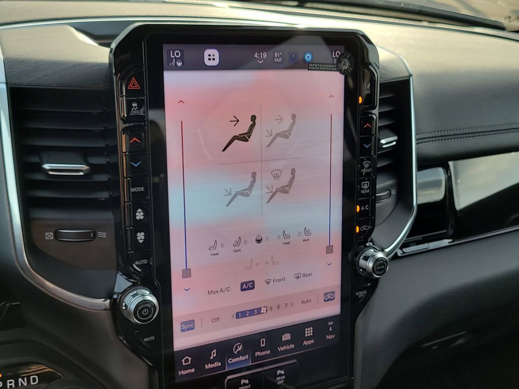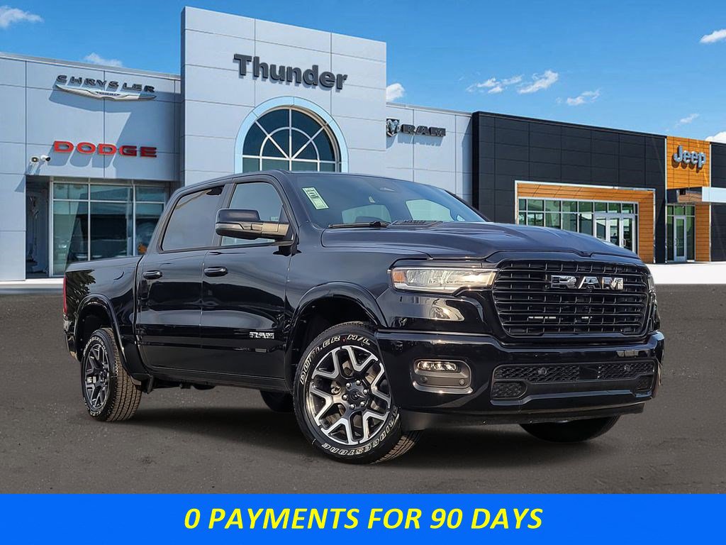 On the outside, the Ram 1500 Laramie sports 20-inch x 9.0-inch premium painted/polished wheels and 275/55R20 all-season LRR tires, ensuring you're ready for any terrain. The LED low/high reflector headlamps and automatic high-beam headlamp-control light up the night, while the LED front fog lamps cut through the mist like a pro. Inside, you'll find 8-way power adjustable driver and front passenger seats, with heating and ventilation to keep you comfy no matter the weather. The Uconnect® 5 Nav with a 12.0-inch touch screen display keeps you connected and entertained. And if you're worried about longevity, rest easy knowing it comes with a 5-year or 60,000-mile Powertrain Limited Warranty and a 3-year or 36,000-mile Basic Limited Warranty. This truck is ready to tackle whatever life throws at it, with a wink and a nod.