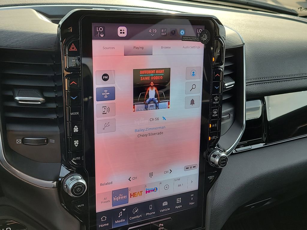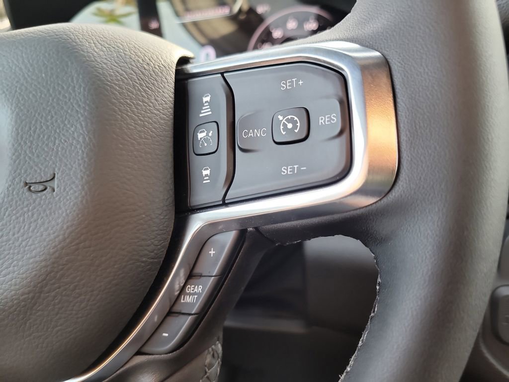 2026 Ram 1500 Laramie comes equipped with a Front Passenger Interactive Display and a 19-Speaker Harman Kardon® Premium Sound system, making it a rolling concert hall for your road trips. Under the hood, it boasts a Twin Turbo Regular Unleaded I-6 3.0 L/183 engine, perfect for those who need a truck that can handle both work and play. The Diamond Black Crystal Pearl-Coat Exterior Paint and body-color front bumper give it a sleek, modern look, while the accent-color premium power mirrors and power tailgate add a touch of convenience. This truck is not just about looks; it also features adaptive cruise control to keep you cruising smoothly on the highway.