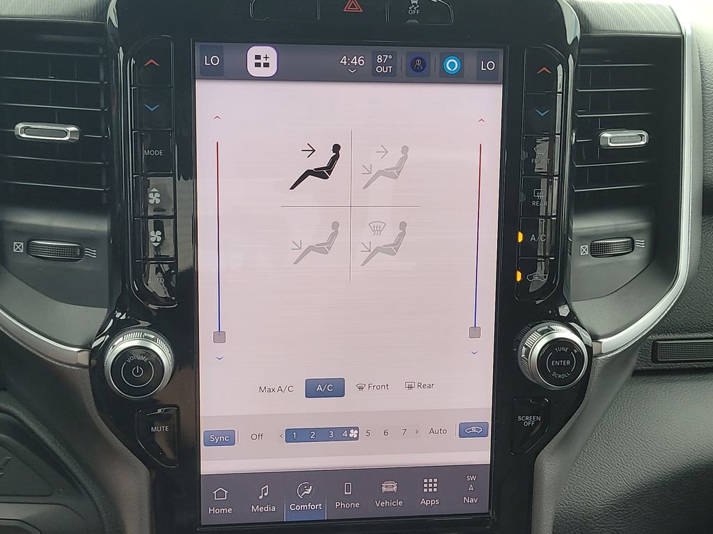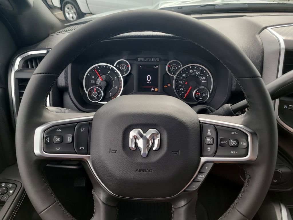BIG HORN LEVEL 1 PLUS EQUIPMENT GROUP -inc: Emergency Vehicle Alert System (EVAS) 12" Touchscreen Display Glove Box Lamp Auto Power-Folding Mirrors Footwell Courtesy Lamp Anti-Spin Differential Rear Axle MOPAR Deployable Bed Step Alexa Built-In Forward & Reverse Utility Lights Locking Lower Glove Box Remote Start System 9 Alpine Speakers w/Subwoofer Disassociated Touchscreen Display Dual Glove Boxes 2nd Row In Floor Storage Bins Rear View Auto Dim Mirror Rear Dome w/On/Off Switch Lamp LED Bed Lighting GPS Navigation SiriusXM w/360L Connected Travel & Traffic Services Foam Bottle Insert (Door Trim Panel) Big Horn IP Badge Off-Road Info Pages Trailer Tow Pages HD Radio Radio: Uconnect 5 Nav w/12.0" Display Power Heated Folding Telescopic Mirrors Steering Wheel Mounted Audio Controls Air Conditioning ATC w/Dual Zone Control MOPAR Spray In Bedliner Luxury Steering Wheel Power Telescoping Mirrors