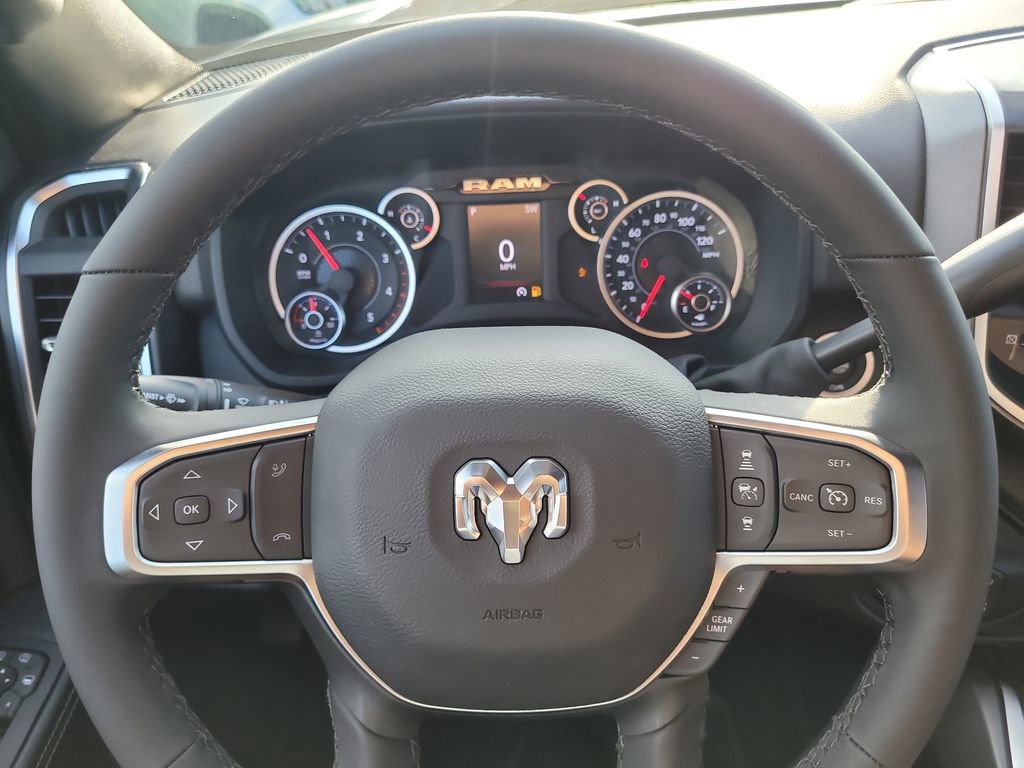 BIG HORN LEVEL 1 PLUS EQUIPMENT GROUP -inc: Emergency Vehicle Alert System (EVAS) 12" Touchscreen Display Glove Box Lamp Auto Power-Folding Mirrors Footwell Courtesy Lamp Anti-Spin Differential Rear Axle MOPAR Deployable Bed Step Alexa Built-In Forward & Reverse Utility Lights Locking Lower Glove Box Remote Start System 9 Alpine Speakers w/Subwoofer Disassociated Touchscreen Display Dual Glove Boxes 2nd Row In Floor Storage Bins Rear View Auto Dim Mirror Rear Dome w/On/Off Switch Lamp LED Bed Lighting GPS Navigation SiriusXM w/360L Connected Travel & Traffic Services Foam Bottle Insert (Door Trim Panel) Big Horn IP Badge Off-Road Info Pages Trailer Tow Pages HD Radio Radio: Uconnect 5 Nav w/12.0" Display Power Heated Folding Telescopic Mirrors Steering Wheel Mounted Audio Controls Air Conditioning ATC w/Dual Zone Control MOPAR Spray In Bedliner Luxury Steering Wheel Power Telescoping Mirrors