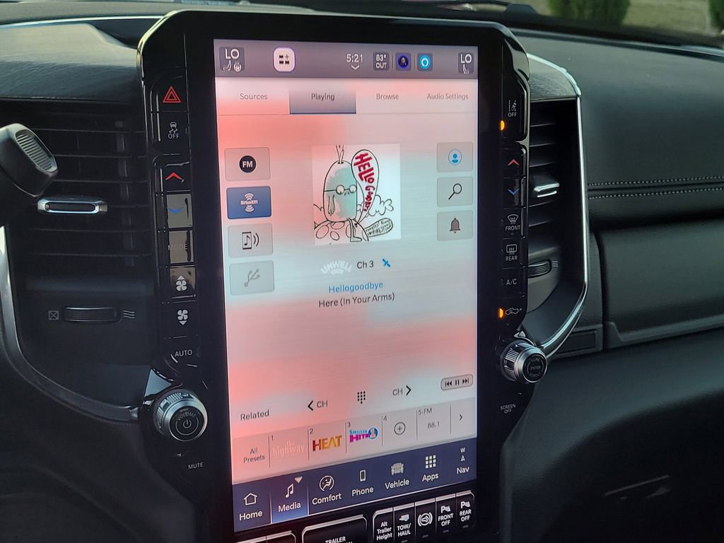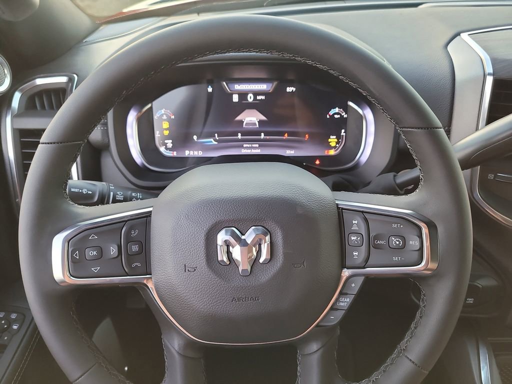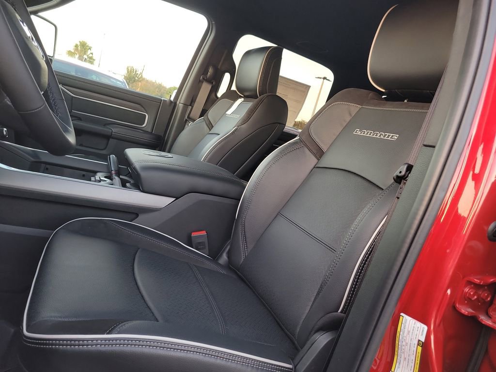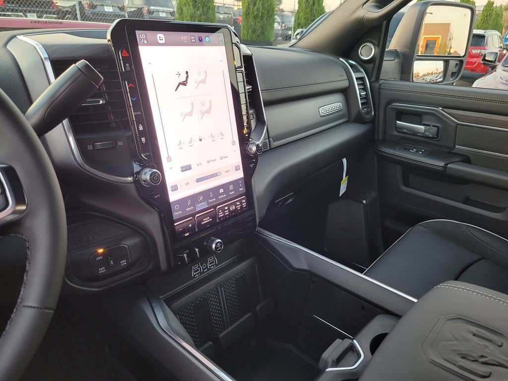 Laramie Level 2 Plus Equipment Group (#1 Seat Foam Cushion, 115V Auxiliary Rear Power Outlet, 14.4" Touchscreen Display, 17 Speaker harman/kardon Premium Sound, 2 Way Rear Headrest Seat, 2nd Row In Floor Storage Bins, 4 Way Front Headrests, 4G LTE Wi-Fi Hot Spot, Active Lane Management System, Adaptive Steering System, Alexa Built-In, Anti-Spin Differential Rear Axle, Apple CarPlay, Auto Adjust In Reverse Exterior Mirrors, Auto Dim Exterior Mirror, Auto High Beam Headlamp Control, Auto Power-Folding Mirrors, Auto-Dimming Exterior Passenger Mirror, Bucket Seats, Chrome Exterior Mirrors, Connected Travel & Traffic Services, Connectivity - US/Canada, CTR Stop Lamp w/Cargo View Camera, Disassociated Touchscreen Display, Drowsy Driver Detection, Dual Wireless Charging Pad, Emergency Vehicle Alert System (EVAS), Exterior Mirrors Courtesy Lamps, Exterior Mirrors w/Heating Element, Exterior Mirrors w/Memory, Exterior Mirrors w/Supplemental Signals, Foam Bottle Insert (Door Trim Panel), Folding Flat Load Floor Storage, For Details, Visit DriveUconnect.com, For More Info, Call 800-643-2112, Forward & Reverse Utility Lights, Front Seat Back Map Pockets, Full Length Upgraded Floor Console, Global Telematics Box Module (TBM), Google Android Auto, GPS Antenna Input, GPS Navigation, HD Radio, Heated Front Seats, Heated Steering Wheel, High Back Seats, Integrated Voice Command w/Bluetooth, Leather Trimmed Bucket Seats, LED Bed Lighting, Mirror Running Lights, MOPAR Deployable Bed Step, MOPAR Spray In Bedliner, Off-Road Info Pages, Power 2-Way Driver Lumbar Adjust, Power 2-Way Passenger Lumbar Adjust, Power Adjust 8-Way Driver Seat, Power Adjust 8-Way Front Passenger Seat, Power Adjust Mirrors, Power Adjustable Pedals w/Memory, Power Deployable Running Boards, Power Heated Fold Telescopic Mirrors w/Memory, Power Telescoping Mirrors, Power-Adjustable Convex Aux Mirrors, Radio: Uconnect 5 Nav w/14.4" Display, Radio/Driver Seat/Mirrors/Pedals Memory, Rain Sensitive Windshield Wipers, Rear 60/40 Folding Seat, Remote Tailgate Release, Selectable Tire Fill Alert, SiriusXM Radio Service, SiriusXM w/360L, Traffic Sign Recognition, Trailer Tow Pages, and Ventilated Front Seats), Night Edition (Black Exterior Mirrors, Black Exterior Truck Badging, Black Wheel Center Hub, Body Color Grille-Surround, Gloss Black Grille Billets/Accents, Sport Performance Hood, and Wheels: 20" x 8.0" Black Painted Aluminum), On Board Power System - 2.4KW, Quick Order Package 24H Laramie, Tow Technology Plus Group (Digital 3.0 Rear View Auto Dimming Mirror and Trailer Reverse Steering Control), Towing Technology Group (Surround View Camera System, Trailer Reverse Guidance, and Trailer Tire Pressure Monitoring System), 10 Speakers, 4-Wheel Disc Brakes, 5th Wheel/Gooseneck Towing Prep Group, ABS brakes, Air Conditioning, Alloy wheels, AM/FM radio: SiriusXM with 360L, Apple CarPlay/Android Auto, Auto Level Rear Air Suspension, Auto-dimming Rear-View mirror, Automatic temperature control, Brake assist, Bumpers: body-color, Clearance Lamps, Compass, Delay-off headlights, Driver door bin, Driver vanity mirror, Dual Alternators Rated at 480 Amps, Dual front impact airbags, Dual front side impact airbags, Electronic Stability Control, Front anti-roll bar, Front Center Armrest w/Storage, Front dual zone A/C, Front fog lights, Front License Plate Bracket, Front reading lights, Fully automatic headlights, Garage door transmitter, Heated door mirrors, Heated front seats, Heated steering wheel, Illuminated entry, Leather Trim 40/20/40 Bench Seat, Low tire pressure warning, Manufacturer's Statement of Origin, MOPAR Front & Rear Rubber Floor Mats, Navigation System, Occupant sensing airbag, Outside temperature display, Overhead airbag, Overhead console, Panic alarm, ParkView Rear Back-Up Camera, Passenger door bin, Passenger vanity mirror, Power door mirrors, Power driver seat, Power passenger
