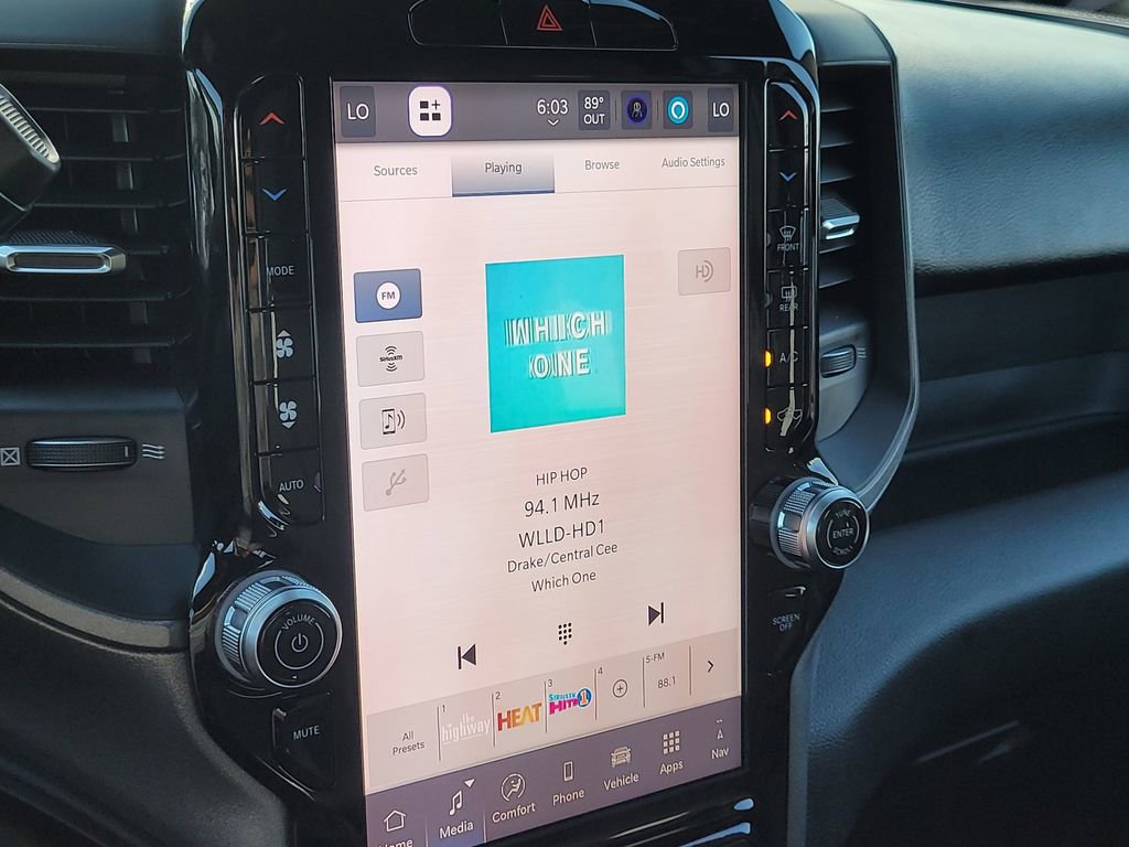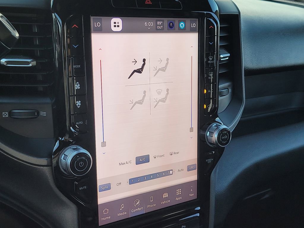 The 2026 Ram 2500 interior features luxury comfort with heated leather seats, large displays including the 12.0-inch touchscreen with Uconnect 5 navigation, Wi-Fi hotspot, hands-free audio and phone functions, Ram Connect, USB ports, power outlets, and integrated voice command, Apple CarPlay, Android Auto, built-in Alexa, SiriusXM 360L, storage throughout, and advanced safety technology.