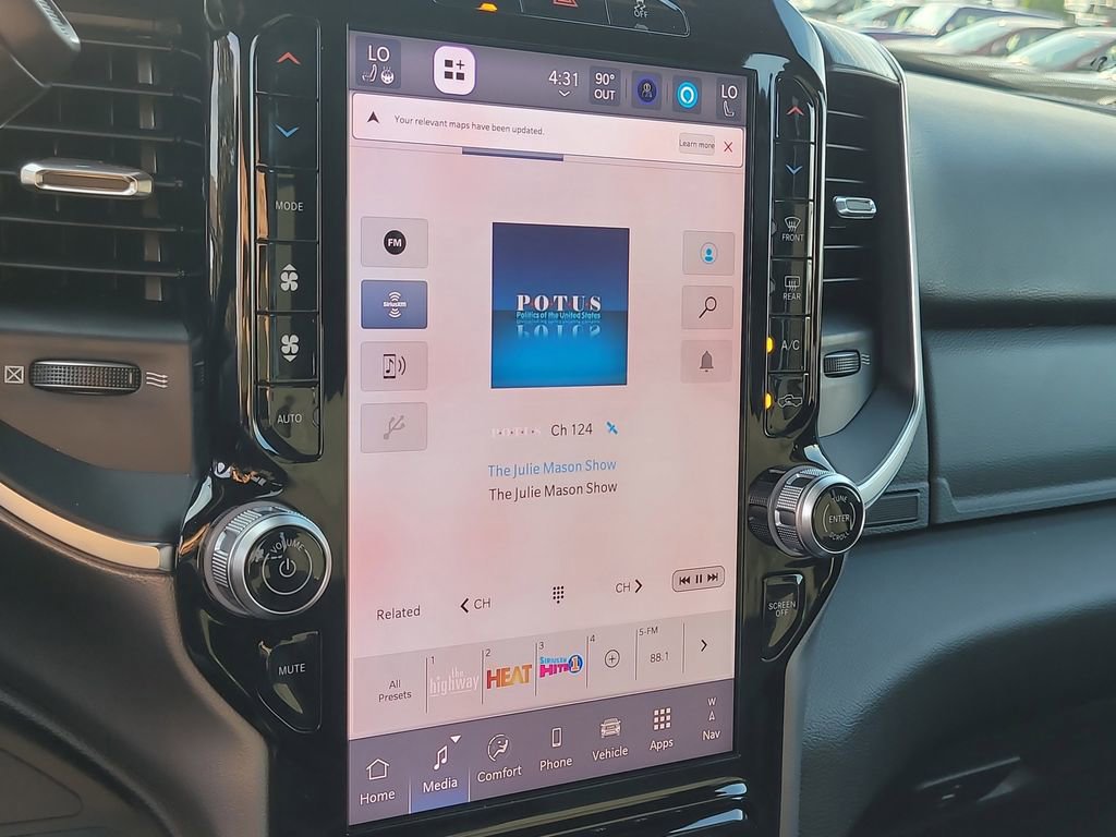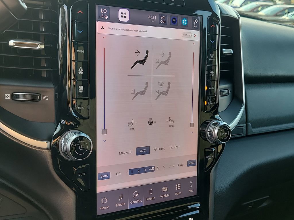 Big Horn Level 2 Plus Equipment Group (115V Auxiliary Front Power Outlet, 12" Touchscreen Display, 2 Way Rear Headrest Seat, 2nd Row In Floor Storage Bins, 4 Way Front Headrests, 400W Inverter, 4G LTE Wi-Fi Hot Spot, 9 Alpine Speakers w/Subwoofer, Active Lane Management System, Adaptive Steering System, Air Conditioning ATC w/Dual Zone Control, Alexa Built-In, Apple CarPlay, Auto High Beam Headlamp Control, Auto Power-Folding Mirrors, Auto-Dimming Rear-View Mirror, Black Exterior Mirrors, Blind Spot & Cross Path Detection, Bucket Seats, Cluster 7.0" TFT Color Display, Connected Travel & Traffic Services, Connectivity - US/Canada, CTR Stop Lamp w/Cargo View Camera, Dampened Tailgate, Disassociated Touchscreen Display, Drowsy Driver Detection, Dual Glove Boxes, Dual Wireless Charging Pad, Emergency Vehicle Alert System (EVAS), Exterior 115V AC Outlet, Exterior Mirrors Courtesy Lamps, Exterior Mirrors w/Heating Element, Exterior Mirrors w/Supplemental Signals, Foam Bottle Insert (Door Trim Panel), Folding Flat Load Floor Storage, Footwell Courtesy Lamp, For Details Visit DriveUconnect.com, For More Info, Call 800-643-2112, Forward & Reverse Utility Lights, Front Seat Back Map Pockets, Full Length Upgraded Floor Console, Global Telematics Box Module (TBM), Glove Box Lamp, Google Android Auto, GPS Antenna Input, GPS Navigation, HD Radio, Heated Front Seats, Heated Steering Wheel, Integrated Voice Command w/Bluetooth, LED Bed Lighting, LED Tail Lamps, Locking Lower Glove Box, Luxury Steering Wheel, Manual Adjust 4-Way Front Passenger Seat, Mirror Running Lights, MOPAR Deployable Bed Step, MOPAR Spray In Bedliner, Off-Road Information Pages, Power 2-Way Driver Lumbar Adjust, Power Adjust 8-Way Driver Seat, Power Adjust Mirrors, Power Adjustable Pedals, Power Heated Fold Telescopic Mirrors, Power Telescoping Mirrors, Power-Adjustable Convex Aux Mirrors, Premium Cloth Bucket Seats, Radio: Uconnect 5 Nav w/12.0" Display, Rain Sensitive Windshield Wipers, Rear 60/40 Folding Seat, Rear Dome w/On/Off Switch Lamp, Rear Power Sliding Window, Red Tail Lamp Bezels, Remote Start System, Selectable Tire Fill Alert, SiriusXM Radio Service, SiriusXM w/360L, Steering Wheel Mounted Audio Controls, Sun Visors w/Illuminated Vanity Mirrors, Surround View Camera System, Traffic Sign Recognition, Trailer Reverse Guidance, Trailer Tire Pressure Monitoring System, Trailer Tow Pages, and Universal Garage Door Opener), Max Tow Package (5th Wheel/Gooseneck Towing Prep Group), Quick Order Package 24Z Big Horn, Sport Appearance Package (Black Interior Accents, Body Color Grille Surround, Painted Front Bumper, Painted Rear Bumper, and Sport Decal), 4-Wheel Disc Brakes, 40/20/40 Split Bench Seat, 6 Speakers, 6000# Front Axle w/Hub Ext, ABS brakes, Air Conditioning, Alloy wheels, AM/FM radio: SiriusXM, Apple CarPlay/Android Auto, Box & Rear Fender Clearance Lamps, Brake assist, Bumpers: chrome, Center Hub, Clearance Lamps, Cloth 40/20/40 Bench Seat, Compass, Delay-off headlights, Driver door bin, Dual front impact airbags, Dual front side impact airbags, Dual Rear Wheels, Electronic Stability Control, Front anti-roll bar, Front Armrest w/Cupholders, Front Center Armrest w/Storage, Front fog lights, Front reading lights, Fully automatic headlights, Heated door mirrors, Illuminated entry, Low tire pressure warning, Manual Adjust 4-Way Driver Seat, MOPAR Front & Rear Rubber Floor Mats, Nexen Brand Tires, Occupant sensing airbag, Outside temperature display, Overhead airbag, Overhead console, Panic alarm, ParkView Rear Back-Up Camera, Passenger door bin, Passenger vanity mirror, Power door mirrors, Power steering, Power windows, Radio data system, Radio: Uconnect 5 w/8.4" Display, Rear Folding Seat, Rear seat center armrest, Rear step bumper, Rear Wheelhouse Liners, Rear window defroster, Remote keyless entry, Remote USB Port - Charge Only, Speed control, Storage Tray, Ta