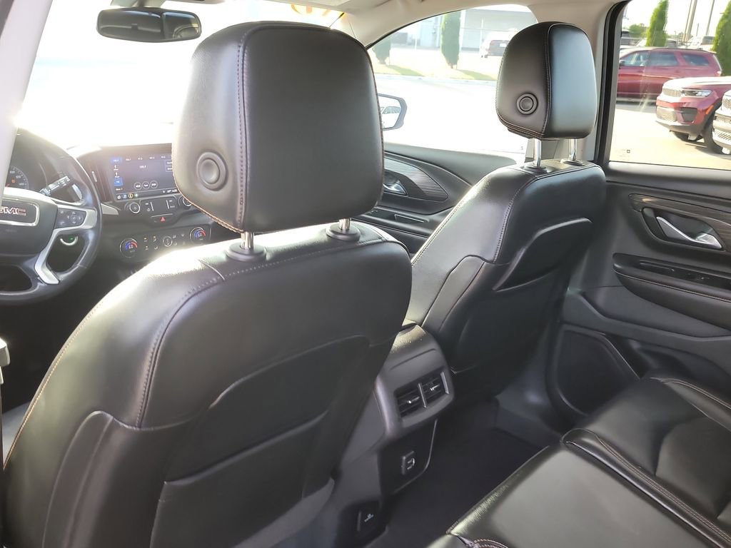 * JD Power Automotive Performance, Execution and Layout (APEAL) Study Chrome Package (Body-Color Door Handles w/Chrome Surround, Chrome Mirror Caps, Unique Chrome Grille w/Chrome Surround, and Wheels: 19" x 7.5" Machined Aluminum w/Gray Accents), Driver Alert Package I (Lane Change Alert w/Side Blind Zone Alert, Rear Cross-Traffic Alert, Rear Park Assist, and Safety Alert Seat), Interior Protection Package (LPO) (All-Weather Cargo Mat (LPO) and All-Weather Floor Mats), License Plate Front Mounting Package, Memory Package, Preferred Equipment Group 4SA, Preferred Package (6-Way Power Front Passenger Seat, Hands-Free Rear Power Programmable Liftgate, Heated Steering Wheel, Universal Home Remote, and Front Passenger 2-Way Power Lumbar), Terrain SLT, 4D Sport Utility, 2.0L Turbocharged, 9-Speed Automatic, AWD, Ebony Twilight Metallic, Jet Black Leather, 2 USB Data Ports, 2 USB Data Ports w/SD Card Reader, 4-Way Manual Front Passenger Seat, 4-Wheel Antilock 4-Wheel Disc Brakes, 4-Wheel Disc Brakes, 6 Speakers, 6-Speaker Audio System Feature, 8-Way Power Driver Seat Adjuster, ABS brakes, Air Conditioning, Alloy wheels, AM/FM radio: SiriusXM, Apple CarPlay/Android Auto, Auto-dimming door mirrors, Auto-dimming Rear-View mirror, Automatic temperature control, Bluetooth® For Phone, Brake assist, Bumpers: body-color, Compass, Delay-off headlights, Driver & Front Passenger Heated Seats, Driver door bin, Driver vanity mirror, Dual Exhaust w/Bright Tips, Dual front impact airbags, Dual front side impact airbags, Electronic Stability Control, Emergency communication system, Exterior Parking Camera Rear, Four wheel independent suspension, Front & Rear Molded Splash Guards, Front anti-roll bar, Front Bucket Seats, Front Center Armrest, Front dual zone A/C, Front fog lights, Front reading lights, Fully automatic headlights, Heated door mirrors, Heated front seats, High-Intensity Discharge Headlights, Illuminated entry, Low tire pressure warning, Occupant sensing airbag, Outside temperature display, Overhead airbag, Overhead console, Panic alarm, Passenger door bin, Passenger vanity mirror, Perforated Leather-Appointed Seat Trim, Power door mirrors, Power Driver Lumbar Control, Power driver seat, Power steering, Power windows, Radio data system, Radio: GMC Infotainment Audio System w/8" Display, Rear anti-roll bar, Rear seat center armrest, Rear window defroster, Rear window wiper, Remote keyless entry, Roof Rack Cross Rails (LPO), Roof rack: rails only, Security system, SiriusXM Radio, Speed control, Speed-sensing steering, Split folding rear seat, Spoiler, Steering wheel mounted audio controls, Tachometer, Telescoping steering wheel, Tilt steering wheel, Traction control, Trip computer, Turn signal indicator mirrors, Variably intermittent wipers, and Wheels: 18" x 7" Machined Aluminum w/Gray Accents.