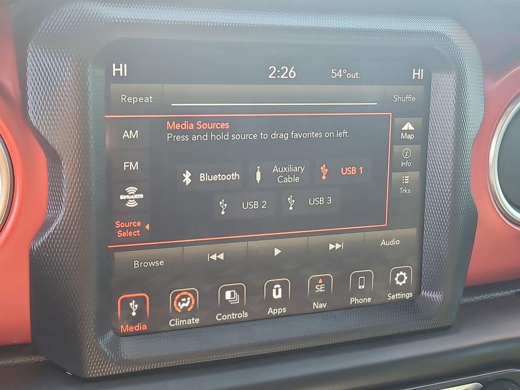 The 2020 Jeep Wrangler Unlimited Rubicon is equipped with an 8-Speed Automatic 850RE Transmission and an 8.4-Inch Radio and Premium Audio Group, making it a standout in its class. This model features a Regular Unleaded V-6 3.6 L/220 engine, ensuring a robust performance for both on and off-road adventures. Optional equipment includes a 4G LTE Wi-Fi Hot Spot, 5-Year SiriusXM® Traffic™ Service, and 5-Year SiriusXM® Travel Link Service, providing connectivity and convenience for every journey. The exterior is complemented by a Black Sunrider® Soft Top, adding a touch of rugged style to its iconic design.
