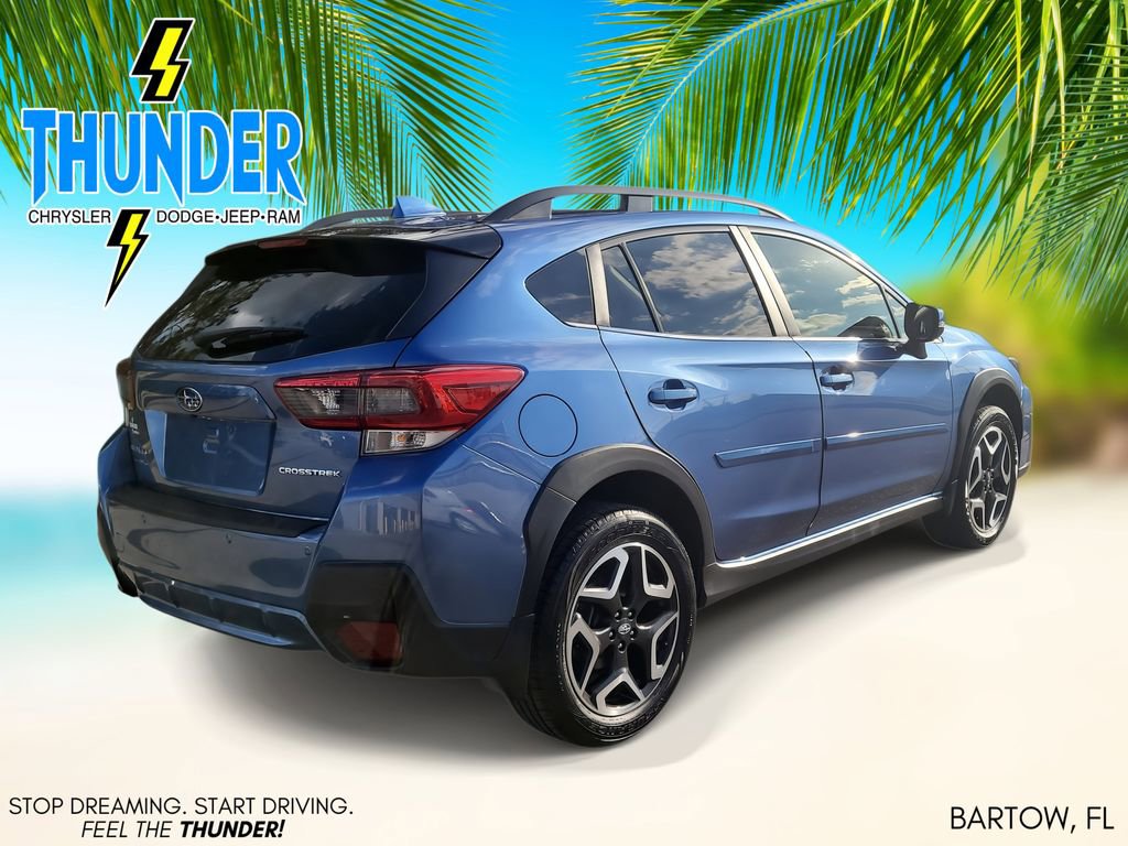 * ALG Residual Value Awards, Residual Value Awards Moonroof Package w/Navigation (harman/kardon Speaker System and Power Moonroof), Popular Package #4 (All-Weather Floor Liners, Auto-Dimming Exterior Mirror w/Approach Light, Auto-Dimming Mirror w/Compass & HomeLink, Map & Dome Lights LED Upgrade, Rear Bumper Cover, Rear Seatback Protector, and Splash Guards), Crosstrek Limited, 4D Sport Utility, 2.0L DOHC, Lineartronic CVT, AWD, Quartz Blue, Gray Leather, Navigation System, 18" Alloy Wheels, 3.90 Axle Ratio, 4-Wheel Disc Brakes, 6 Speakers, ABS brakes, Air Conditioning, Alloy wheels, AM/FM radio: SiriusXM, Auto High-beam Headlights, Automatic temperature control, Brake assist, Bumpers: body-color, CD player, Driver door bin, Driver vanity mirror, Dual front impact airbags, Dual front side impact airbags, Electronic Stability Control, Emergency communication system: STARLINK Safety and Security (Subscription Required), Exterior Parking Camera Rear, Footwell Illumination Kit, Four wheel independent suspension, Front anti-roll bar, Front Bucket Seats, Front Center Armrest, Front fog lights, Front reading lights, Fully automatic headlights, Heated door mirrors, Heated Front Bucket Seats, Heated front seats, Illuminated entry, Knee airbag, Leather-Trimmed Upholstery, Low tire pressure warning, Occupant sensing airbag, Outside temperature display, Overhead airbag, Overhead console, Panic alarm, Passenger door bin, Passenger vanity mirror, Power door mirrors, Power driver seat, Power steering, Power windows, Quartz Blue Pearl Body Side Molding, Radio data system, Radio: Subaru Starlink 8.0" Multimedia Plus System, Rear anti-roll bar, Rear seat center armrest, Rear window defroster, Rear window wiper, Remote keyless entry, Security system, Side Sill Plate, Speed control, Speed-sensing steering, Split folding rear seat, Spoiler, STARLINK/Apple CarPlay/Android Auto, Steering wheel mounted audio controls, Subaru Starlink Smartphone Integration, Tachometer, Telescoping steering wheel, Tilt steering wheel, Traction control, Trip computer, Turn signal indicator mirrors, and Variably intermittent wipers.