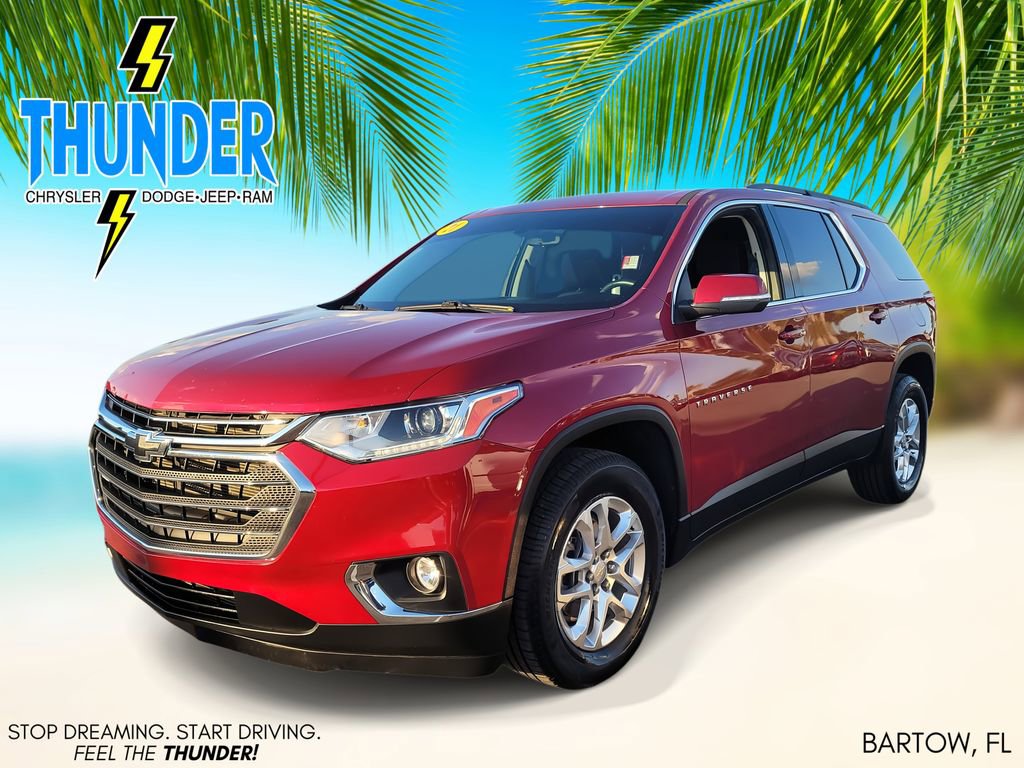 * 2021 IIHS Top Safety Pick with optional front crash prevention and specific headlights 1LT Convenience & Driver Confidence Package (4.2" Multi-Color Enhanced Driver Instrument Display, Heated Driver & Front Passenger Seats, Lane Change Alert w/Side Blind Zone Alert, Radio: Chevrolet Infotainment 3 Plus System, Rear Cross Traffic Alert, Rear Park Assist w/Audible Warning, Rear Power Liftgate, Remote Start, Universal Home Remote, and SiriusXM w/360L), Preferred Equipment Group 1LT, Trailering Equipment (Heavy-Duty Cooling System and Trailering Assist Guidelines), Traverse LT 1LT, 4D Sport Utility, 3.6L V6 SIDI VVT, 9-Speed Automatic, FWD, Cajun Red Tintcoat, Jet Black Cloth, 3.49 Axle Ratio, 3rd row seats: split-bench, 4-Wheel Disc Brakes, 6 Speakers, 7-Passenger Seating (2-2-3 Seating Configuration), ABS brakes, Air Conditioning, Alloy wheels, AM/FM radio: SiriusXM, Apple CarPlay/Android Auto, Automatic temperature control, Brake assist, Bumpers: body-color, Compass, Delay-off headlights, Driver door bin, Driver vanity mirror, Dual front impact airbags, Dual front side impact airbags, Electronic Stability Control, Emergency communication system: OnStar and Chevrolet connected services capable, Four wheel independent suspension, Front & Rear Black Bowtie Emblems (LPO), Front anti-roll bar, Front Bucket Seats, Front Center Armrest, Front dual zone A/C, Front fog lights, Front reading lights, Fully automatic headlights, Heated door mirrors, High-Intensity Discharge Headlights, Hitch Guidance w/Hitch View, Illuminated entry, Leather steering wheel, Low tire pressure warning, Occupant sensing airbag, Outside temperature display, Overhead airbag, Overhead console, Panic alarm, Passenger door bin, Passenger vanity mirror, Power door mirrors, Power driver seat, Power steering, Power windows, Premium Cloth Seat Trim, Radio data system, Radio: Chevrolet Infotainment System AM/FM Stereo, Rear air conditioning, Rear anti-roll bar, Rear reading lights, Rear window defroster, Rear window wiper, Remote keyless entry, Roof rack: rails only, Security system, SiriusXM Radio, Speed control, Speed-sensing steering, Spoiler, Steering wheel mounted audio controls, Tachometer, Telescoping steering wheel, Tilt steering wheel, Traction control, Trip computer, Turn signal indicator mirrors, Variably intermittent wipers, Voltmeter, and Wheels: 18" Bright Silver Painted Aluminum.