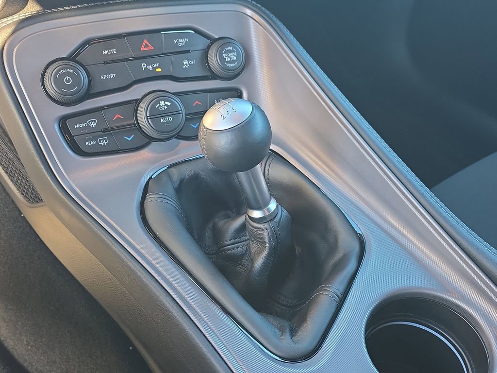 The 2023 Dodge Challenger R/T is equipped with a Premium Unleaded V-8 5.7 L/345 engine that promises a thrilling ride. This model features the Blacktop Package, which includes striking 20-Inch x 8-Inch Black Noise Painted Wheels and a "Challenger Blacktop" Grille Badge, enhancing its bold presence on the road. The exterior is further accentuated by a functional hood scoop, SRT® front splitter, and LED split tail lamps, ensuring that it looks as fast as it drives. For those who appreciate the finer details, the car also sports a black fuel-filler door and dark "345" fender badges, making it a true standout.