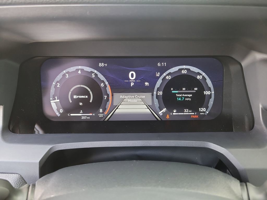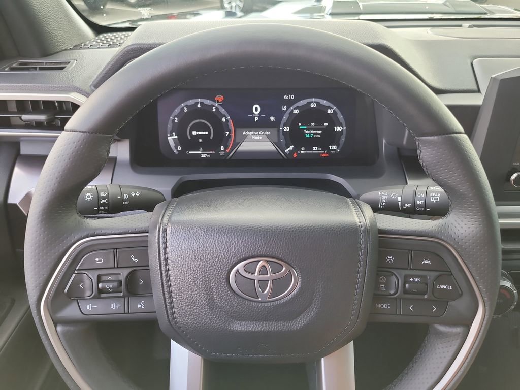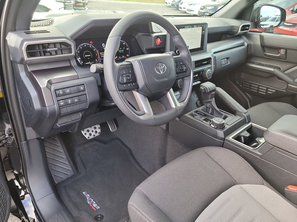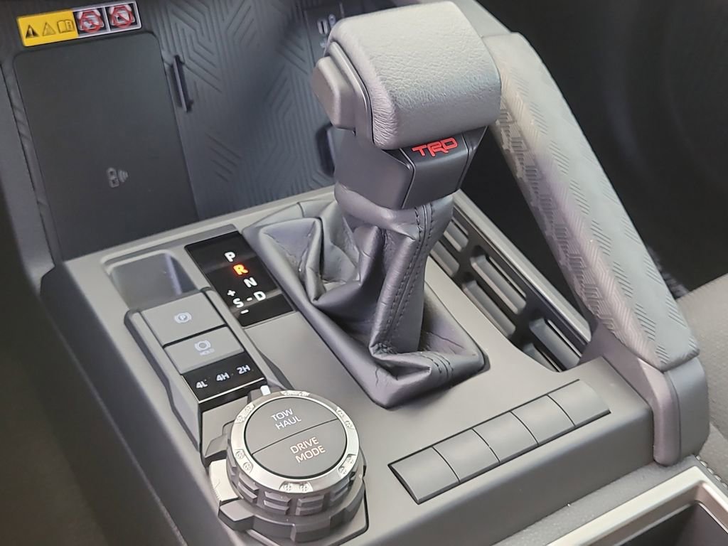 TRD Sport, 4Runner TRD Sport, 4D Sport Utility, 2.4L 4-Cylinder, 8-Speed Automatic, 4WD, Black, Black/Boulder W/Smoke Silver Orn, AM/FM radio: SiriusXM, 4-Wheel Disc Brakes, ABS brakes, Air Conditioning, Alloy wheels, Anti-whiplash front head restraints, Apple CarPlay/Android Auto, Auto High-beam Headlights, Automatic temperature control, Brake assist, Bumpers: body-color, Driver door bin, Driver vanity mirror, Dual front impact airbags, Dual front side impact airbags, Electronic Stability Control, Emergency communication system: Safety Connect (1-year trial), Exterior Parking Camera Rear, Front anti-roll bar, Front Bucket Seats, Front Center Armrest, Front dual zone A/C, Front fog lights, Front reading lights, Front wheel independent suspension, Heated door mirrors, Heated front seats, Illuminated entry, Knee airbag, Leather Shift Knob, Leather steering wheel, Low tire pressure warning, Occupant sensing airbag, Outside temperature display, Overhead airbag, Overhead console, Panic alarm, Passenger door bin, Passenger vanity mirror, Power door mirrors, Power steering, Power windows, Rear anti-roll bar, Rear seat center armrest, Rear side impact airbag, Rear window defroster, Rear window wiper, Remote keyless entry, Security system, Speed control, Speed-sensing steering, Split folding rear seat, Spoiler, Steering wheel mounted audio controls, Tachometer, Telescoping steering wheel, Tilt steering wheel, Traction control, Trip computer, Variably intermittent wipers, and Wheels: 20" Dark-Gray Painted Alloy.