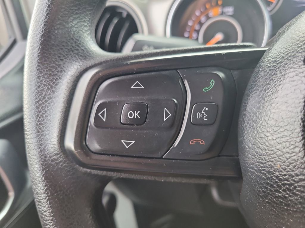 The 2020 Jeep Wrangler Sport, equipped with an 8-Speed Automatic 850RE Transmission and Hill Descent Control, offers a robust driving experience with its Intercooled Turbo Premium Unleaded I-4 2.0 L/122 engine. This model includes the Customer Preferred Package 22B and comes with air conditioning for added comfort. The exterior is designed for rugged functionality, featuring a Black Sunrider® Soft Top, 17-Inch x 7.5-Inch Black Steel Styled Wheels, and 245/75R17 All-Season Tires. It also includes practical elements such as a full-size spare tire, matching spare wheel, and tow hooks—two at the front and one at the rear. Visibility is enhanced with halogen headlamps, headlamp off time delay, front fog lamps, and incandescent tail lamps.