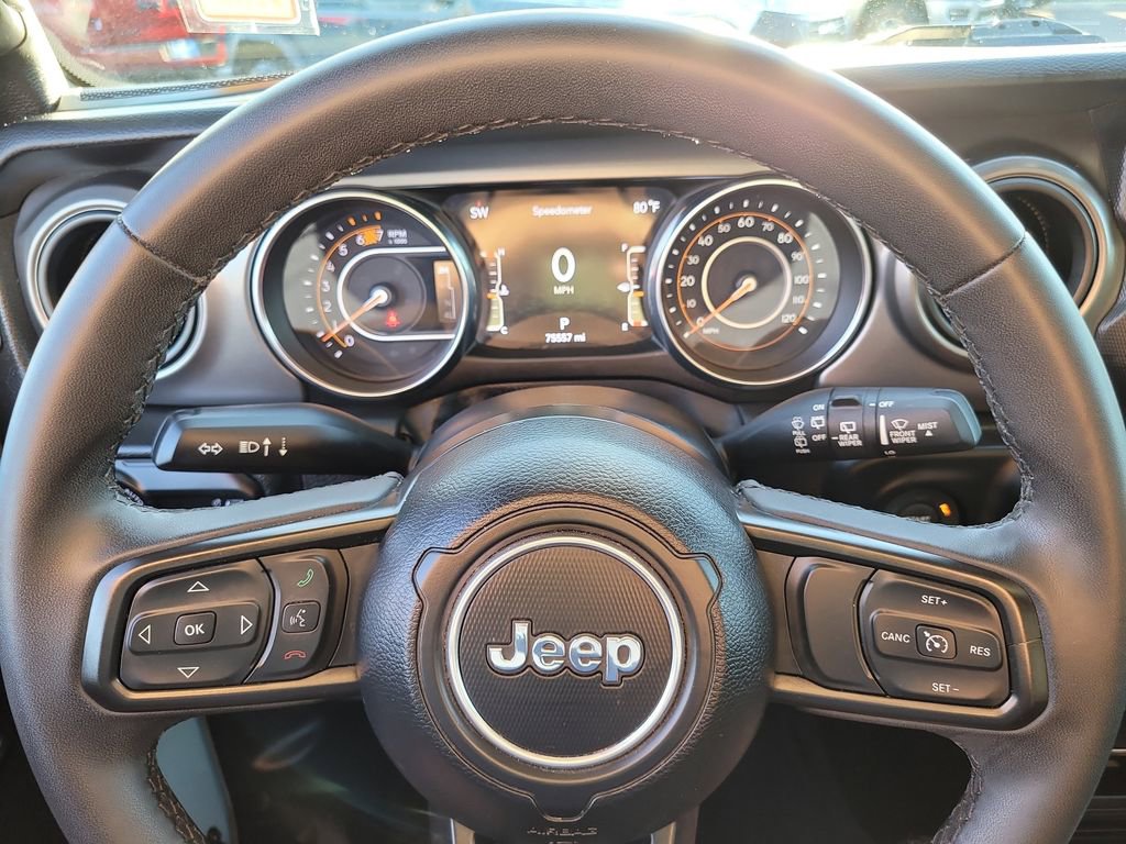 8.4" Radio & Premium Audio Group (1-Year SiriusXM Guardian Trial, 4G LTE Wi-Fi Hot Spot, 5-Year SiriusXM Traffic Service, 5-Year SiriusXM Travel Link Service, 8.4" Touchscreen Display, Alpine Premium Audio System, Apple CarPlay, Auto-Dimming Rear-View Mirror, Emergency/Assistance Call, Google Android Auto, GPS Antenna Input, GPS Navigation, HD Radio, Integrated Center Stack Radio, Integrated Voice Command w/Bluetooth, Off-Road Info Pages, Radio: Uconnect 4C Nav w/8.4" Display, SiriusXM Satellite Radio, SiriusXM Traffic Plus, SiriusXM Travel Link, USB Host Flip, and 220 Amp Alternator), Quick Order Package 25S Sport S (Automatic Headlamps, Deep Tint Sunscreen Windows, Front 1-Touch Down Power Windows, Power Heated Mirrors, Premium Wrapped Steering Wheel, Remote Keyless Entry, Security Alarm, Speed Sensitive Power Locks, Sport S, Sun Visors w/Illuminated Vanity Mirrors, and Wheels: 17" x 7.5 Tech Silver Aluminum), Technology Group (2-Door Passive Entry, Front Door Locks, Air Conditioning w/Auto Temperature Control, Air Filtering, and Cluster 7.0" TFT Color Display), Trailer Tow & Aux Switch Group (240 Amp Alternator, 7 & 4 Pin Wiring Harness, 700 Amp Maintenance Free Battery, Auxiliary Switches, and Class II Receiver Hitch), Wrangler Sport S, FCA US LLC Certified Pre-Owned Certified, 4D Sport Utility, 3.6L V6 24V VVT, 8-Speed Automatic, 4WD, Earl Clearcoat, Black Cloth, 3.45 Overall Top Gear Ratio, 4-Wheel Disc Brakes, 8 Speakers, ABS brakes, Air Conditioning, AM/FM radio, Anti-Spin Differential Rear Axle, Apple CarPlay/Android Auto, Aux Battery, Black 3-Piece Hard Top, Brake assist, Cloth Low-Back Bucket Seats, Compass, Delay-off headlights, Driver door bin, Driver vanity mirror, Dual front impact airbags, Dual front side impact airbags, Electronic Stability Control, Emergency communication system: SiriusXM Guardian, Engine Oil Cooler, Freedom Panel Storage Bag, Front anti-roll bar, Front Bucket Seats, Front Center Armrest w/Storage, Front fog lights, Front reading lights, Integrated roll-over protection, Low tire pressure warning, No Soft Top, Non-Lock Fuel Cap w/o Discriminator, Normal Duty Suspension, Occupant sensing airbag, Outside temperature display, ParkView Rear Back-Up Camera, Passenger door bin, Passenger vanity mirror, Power steering, Radio data system, Radio: Uconnect 4 w/7" Display, Rear anti-roll bar, Rear reading lights, Rear Window Defroster, Rear Window Wiper/Washer, Speed control, Split folding rear seat, Steering wheel mounted audio controls, Stop-Start Dual Battery System, Tachometer, Telescoping steering wheel, Tilt steering wheel, Traction control, Trip computer, Variably intermittent wipers, and Wheels: 17" x 7.5" Black Steel Styled.
